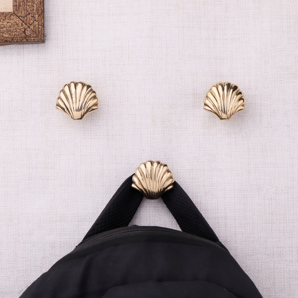 Solid Golden Shell Brass Wall Hooks-Pack of 3. This Hook is Strong Enough to Hold Your Cloths, Keys, Tea Cups, Coffee Mugs, Hand Towels Etc.