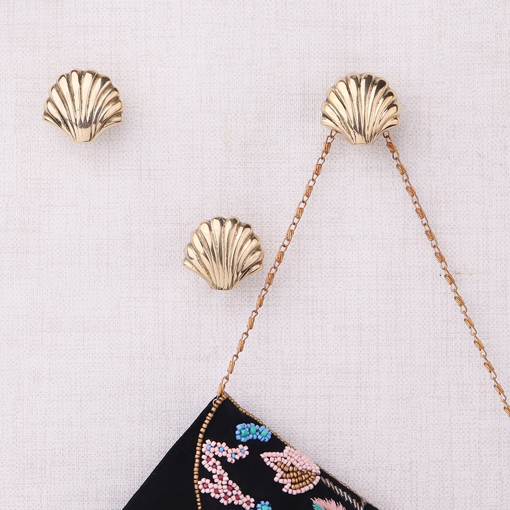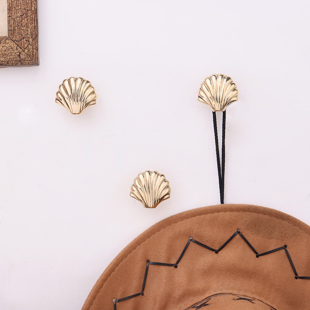 Solid Golden Shell Brass Wall Hooks-Pack of 3. This Hook is Strong Enough to Hold Your Cloths, Keys, Tea Cups, Coffee Mugs, Hand Towels Etc.