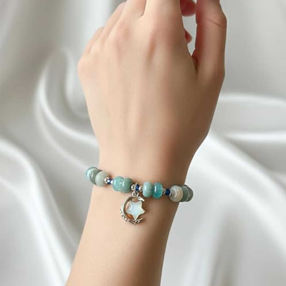 The bracelet blends the earthy essence of semi-precious stones with the wisdom-inspired owl charm, offering elegance with a touch of symbolism.