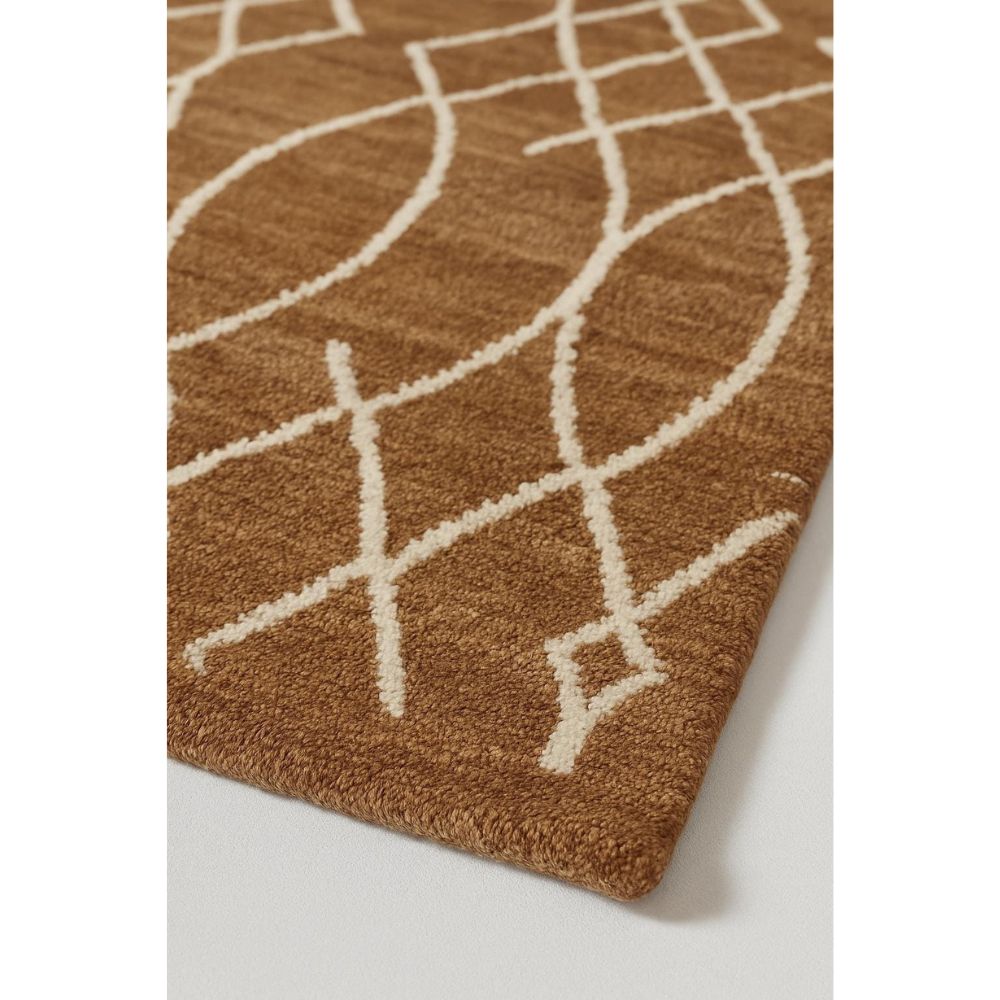 Enhance your interiors with the Moroccan Design Dark Gold & White Rug, handwoven with premium cotton and wool. Featuring an elegant geometric lattice in ivory on a rich dark gold base, this rug brings warmth, sophistication, and durability to any room. Packed & quality-checked by Indianshelf.