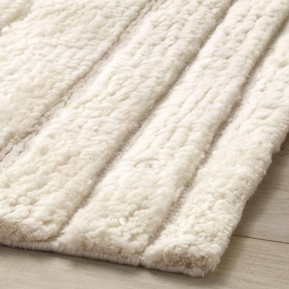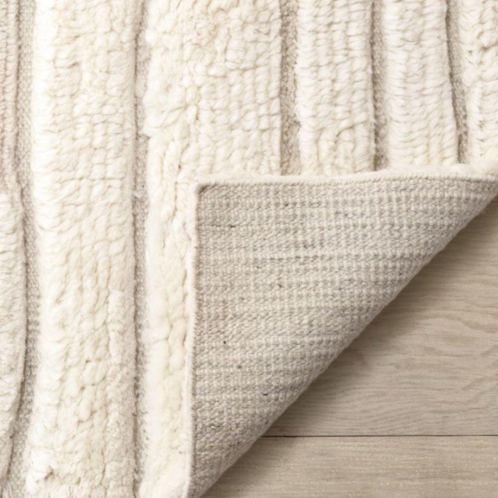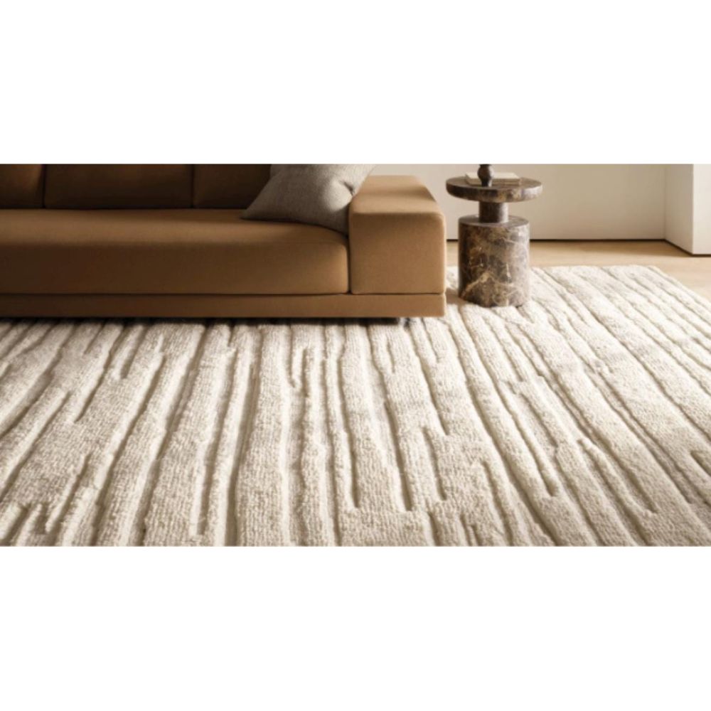 - Elegant ivory rug with hand-carved horizontal line patterns