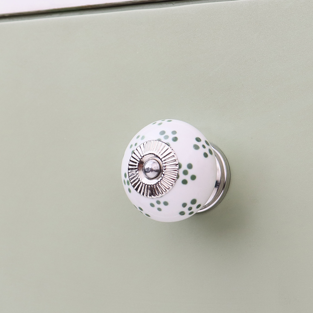 Moss Green Tiny Floral Drawer Knob, kitchen drawers, dining room, bed room, chest drawers, dressing tables, almirah