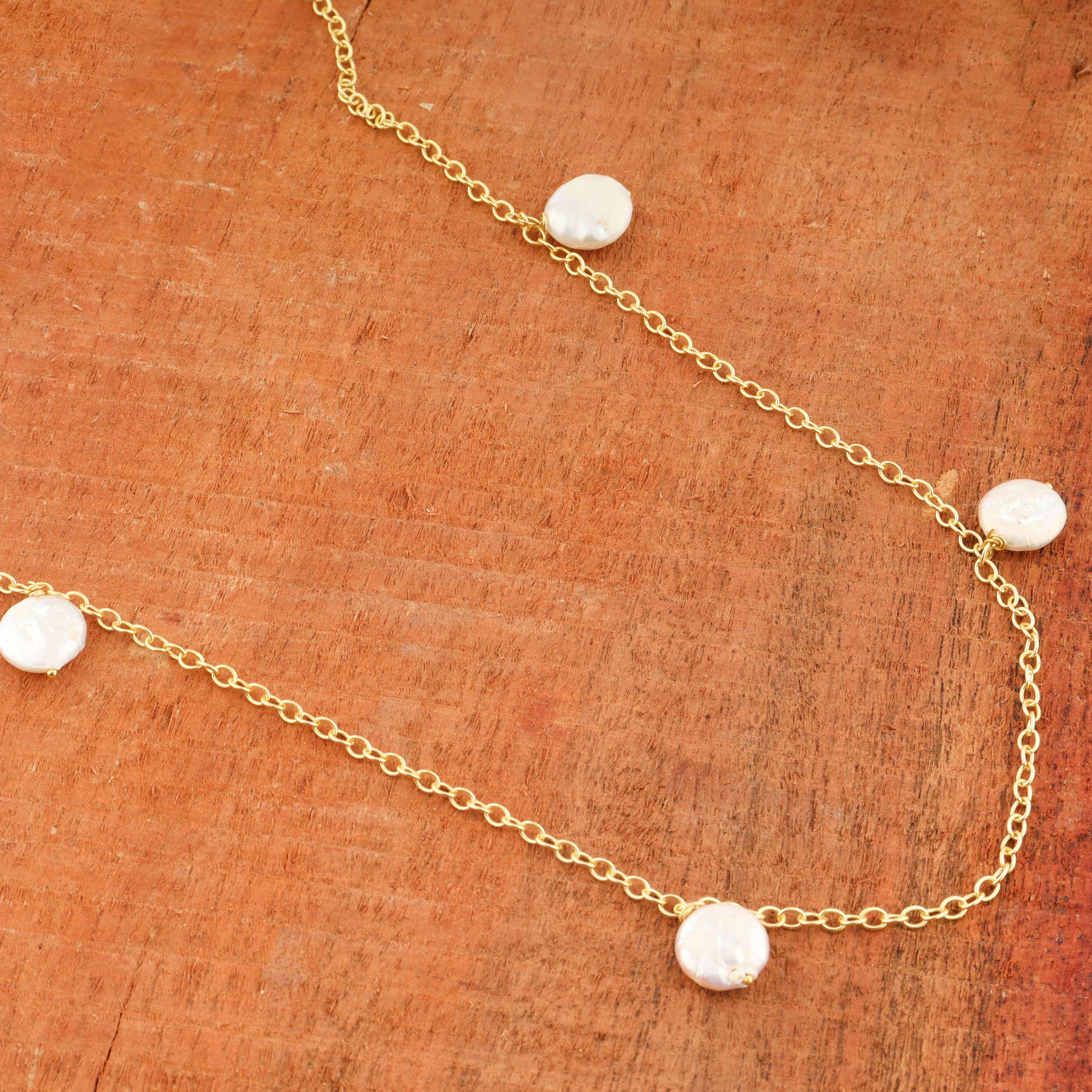 This Mother of Pearl Necklace brings together the soft radiance of natural nacre with the richness of handcrafted metalwork. Made from solid brass and coated in luxurious 22K gold plating, the necklace features a luminous Mother of Pearl pendant known for its calming glow and timeless elegance. At 20 inches, it drapes beautifully over the chest, offering a refined, ethereal accessory suitable for daily wear or special occasions. Each piece is handmade by artisans, giving it both soulful charm and delicate sophistication.