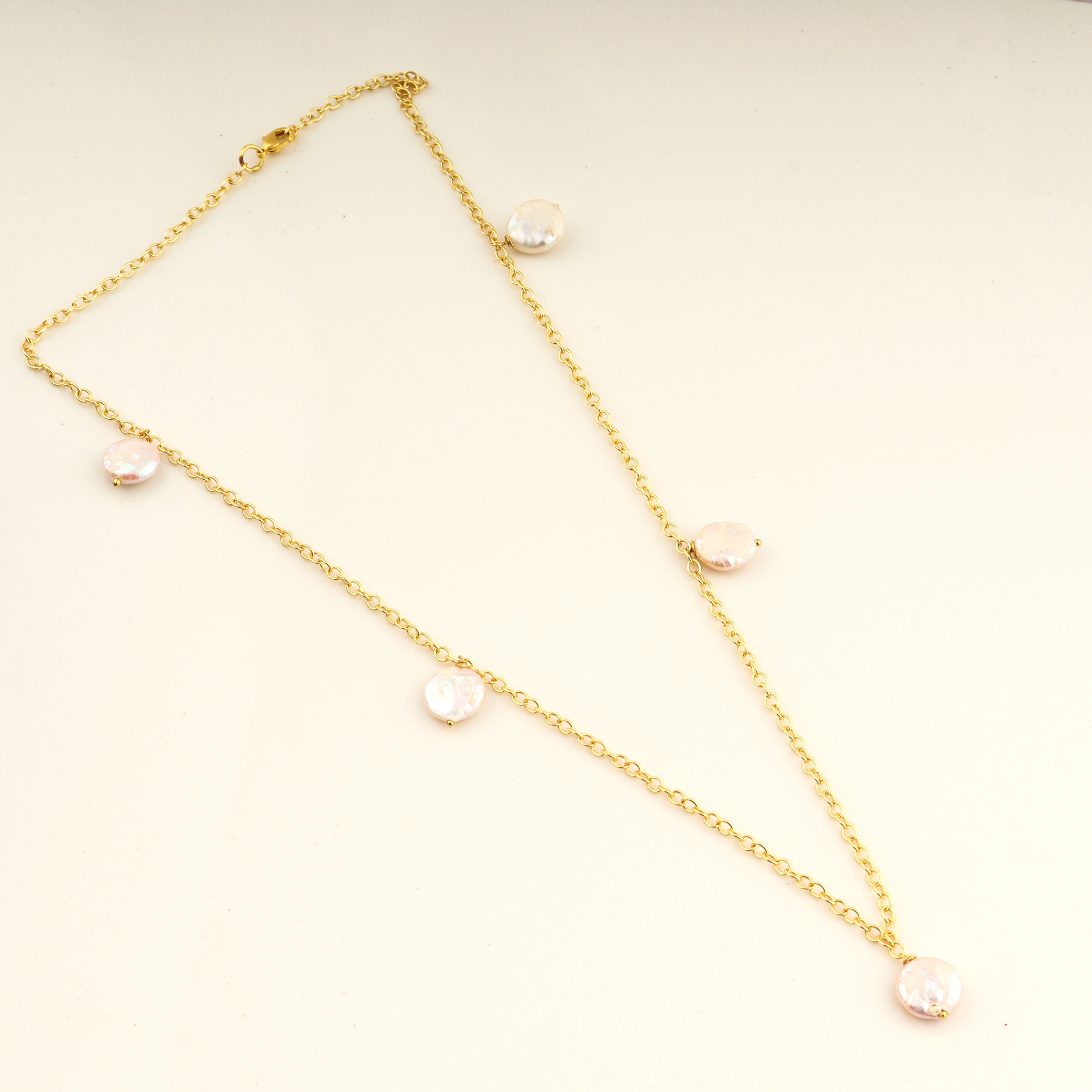 Avoid moisture and gently wipe the Mother of Pearl after wearing to maintain its natural luster and the gold-plated shine.