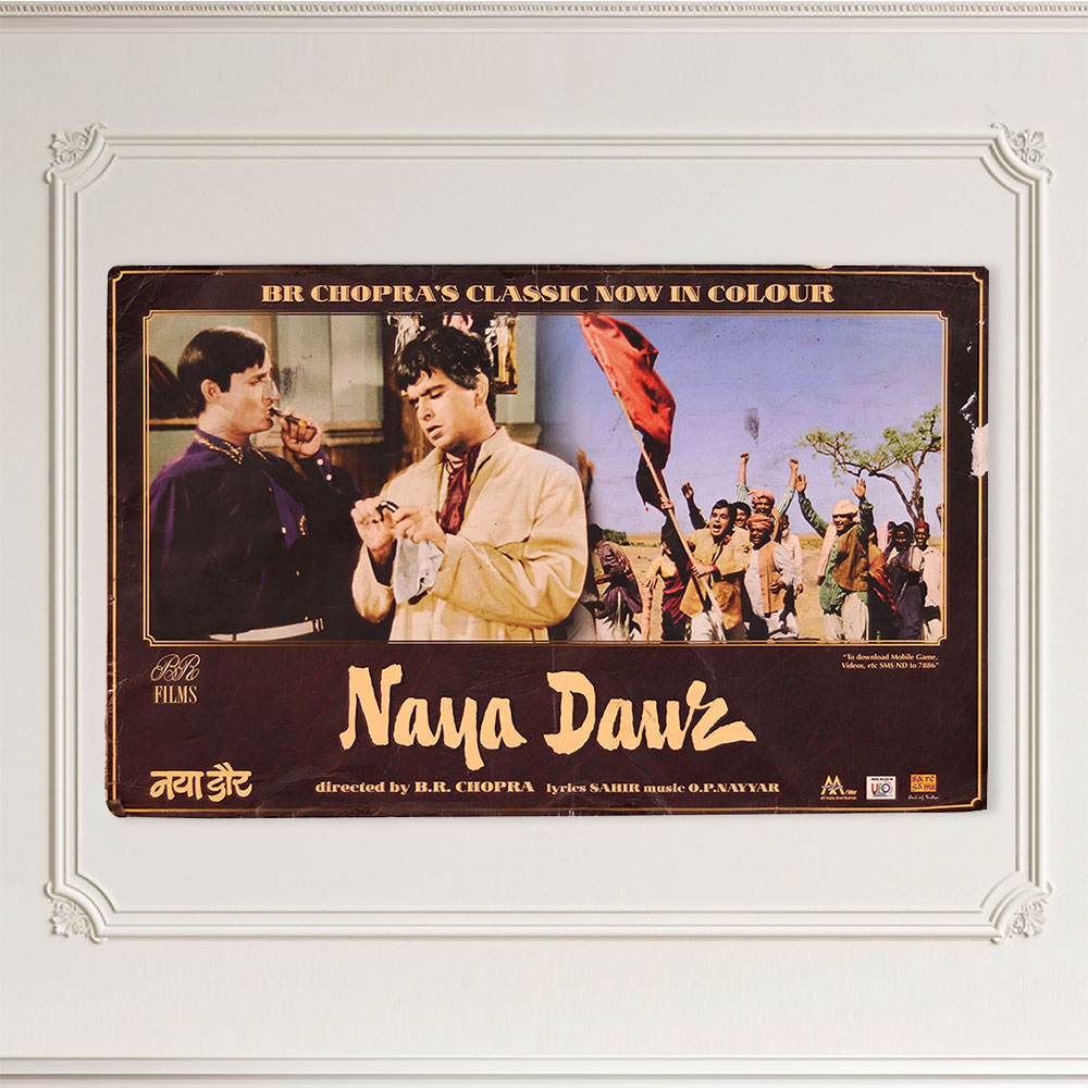 Immerse yourself in the magic of vintage Bollywood with this stunning Naya Daur movie print. Capture the essence of a bygone era and let this captivating artwork transport you to the golden age of Indian cinema. Naya Daur is a cinematic masterpiece that has captivated audiences for generations. Directed by the legendary B.R. Chopra, the film explores the conflict between tradition and modernity in a rapidly changing India. With its stunning visuals, unforgettable performances, and timeless themes, Naya Daur has cemented its place as a true classic of Hindi cinema. This vintage movie print is a must-have for any film enthusiast, art lover, or anyone who appreciates the beauty of the past. Hang it in your living room, home office, or any space that needs a touch of vintage charm and cinematic flair. Let this captivating artwork inspire you daily and transport you to the golden age of Bollywood every time you gaze upon it. Elevate your decor and immerse yourself in the magic of this iconic film.