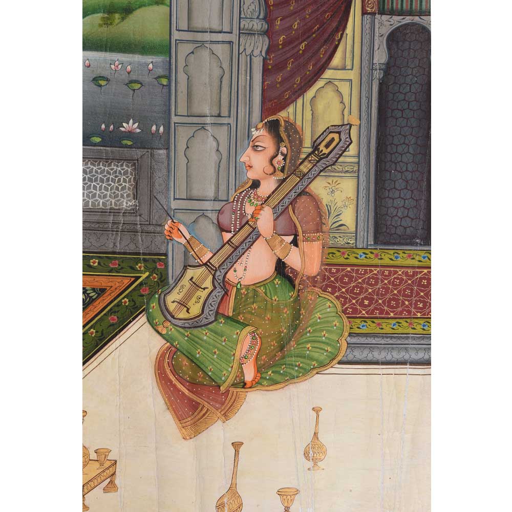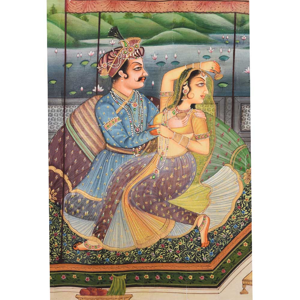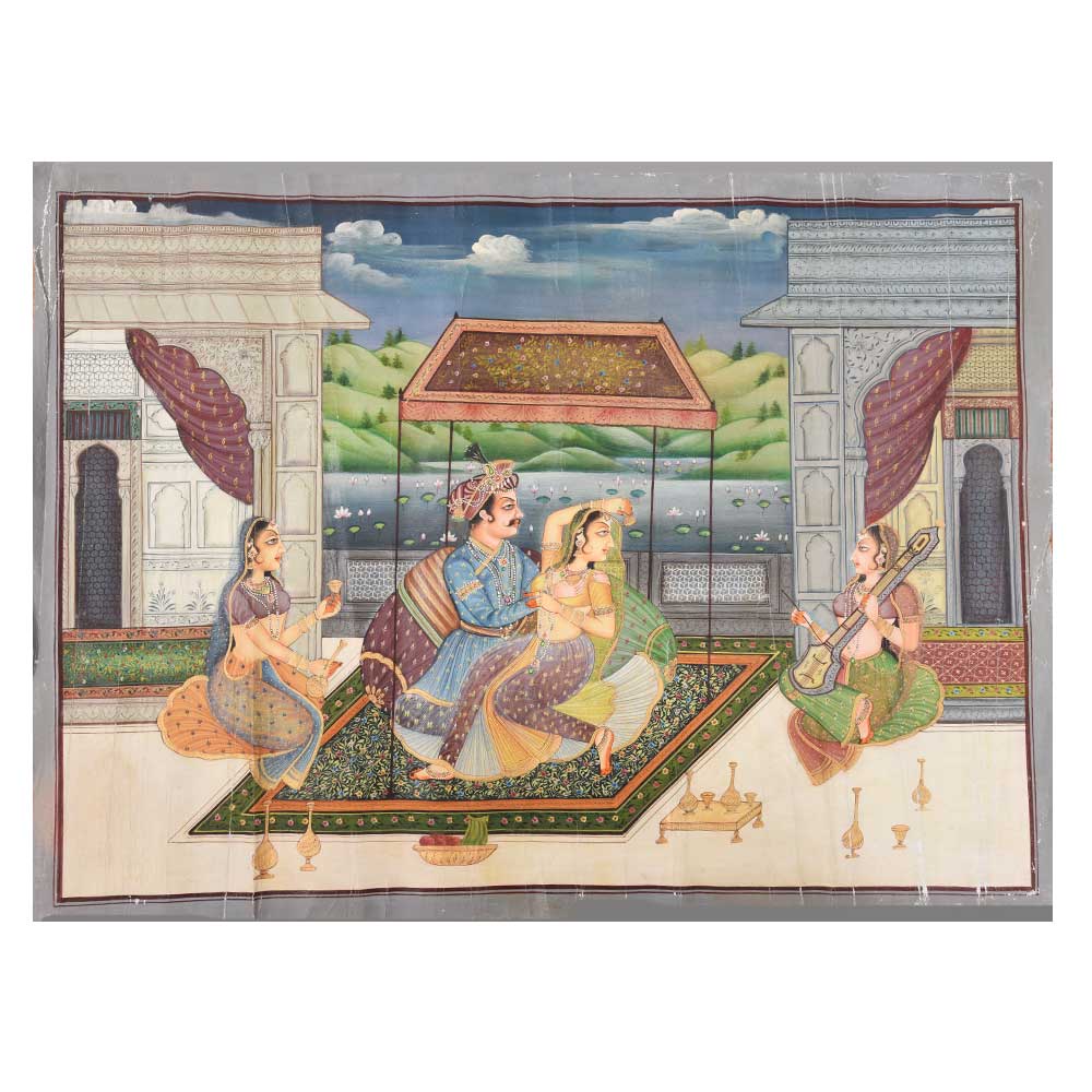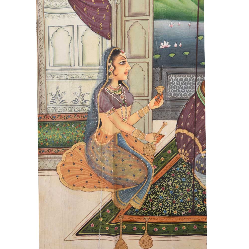 This is a Mughal Canvas painting showing harems of the Mughal emperor. The Mughal ladies spent their entire lives inside the emperor€™s harem where the emperor was the supreme power.