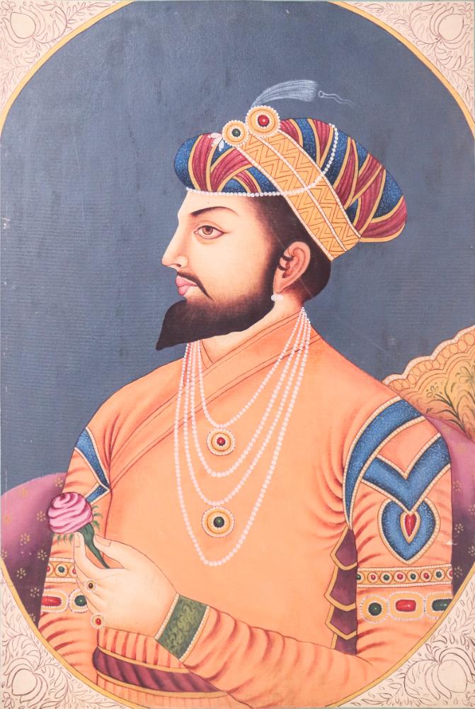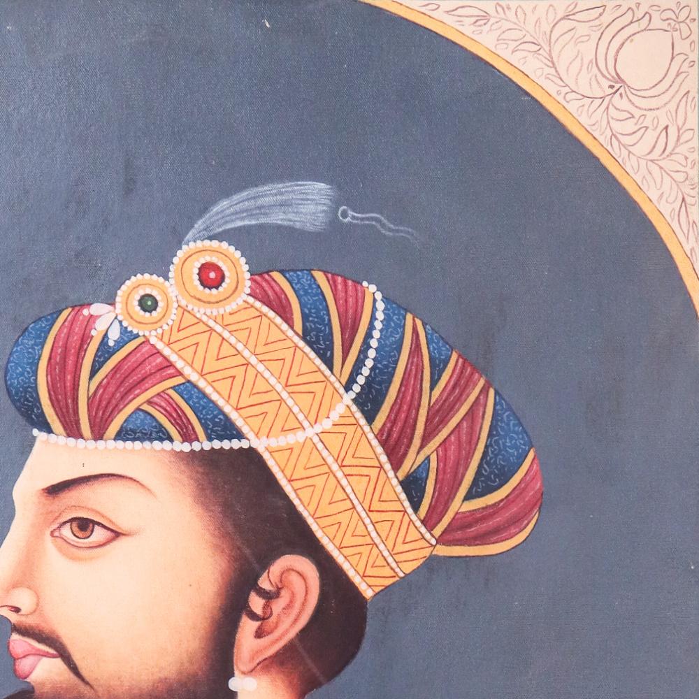 A moment of royal introspection—this acrylic canvas painting portrays a nobleman lost in quiet thought, a single rose cradled in his hand. His gaze looks beyond the frame, capturing both power and vulnerability. Adorned with pearls and gemstones, his orange robe and multicolored turban tell a story of tradition, pride, and heritage. The depth of the background and the softness of the facial features give the painting a calming, reflective quality—ideal for spaces that value storytelling and soul.