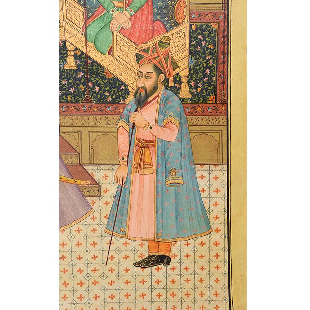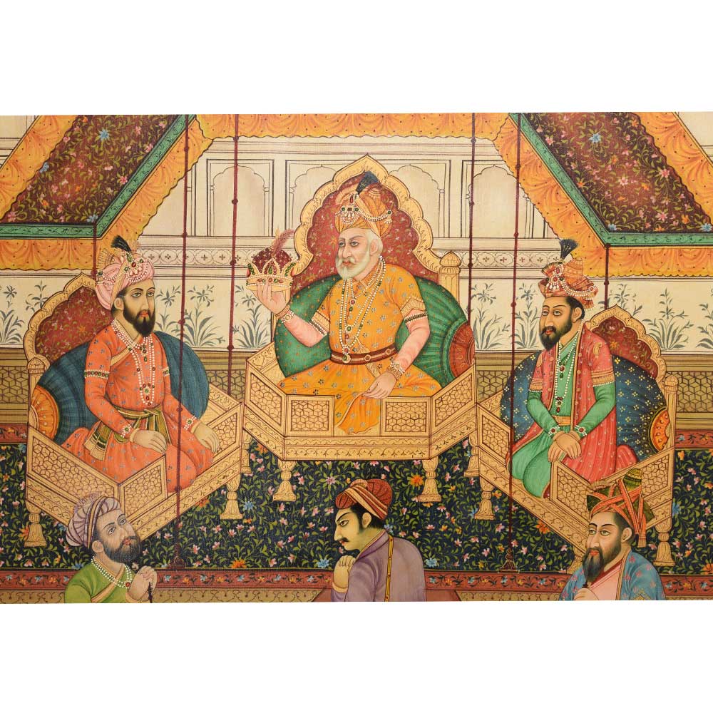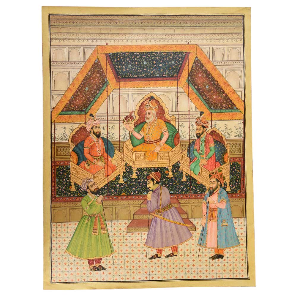 This Mughal painting of emperor Akbar passing the crown from Jahangir to shah jahan is a good option to gift for your loved ones on any occasion.