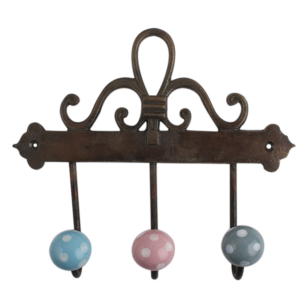 Multi Dot Ceramic Iron Hook. A Perfect Complement to the Soft Tone of the Wood are these White Traditional Hat & Coat Hook Made of Genuine Porcelain and Brass. It can be use to Hang Jewellery, Leashes, Towels, Scarves, Light Weight Sweaters, Caps Etc.