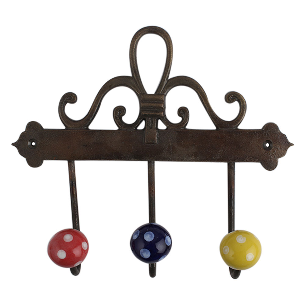 Multi Dot Ceramic Iron Hook. A Perfect Complement to the Soft Tone of the Wood are these White Traditional Hat & Coat Hook Made of Genuine Porcelain and Brass. It can be use to Hang Jewellery, Leashes, Towels, Scarves, Light Weight Sweaters, Caps Etc.