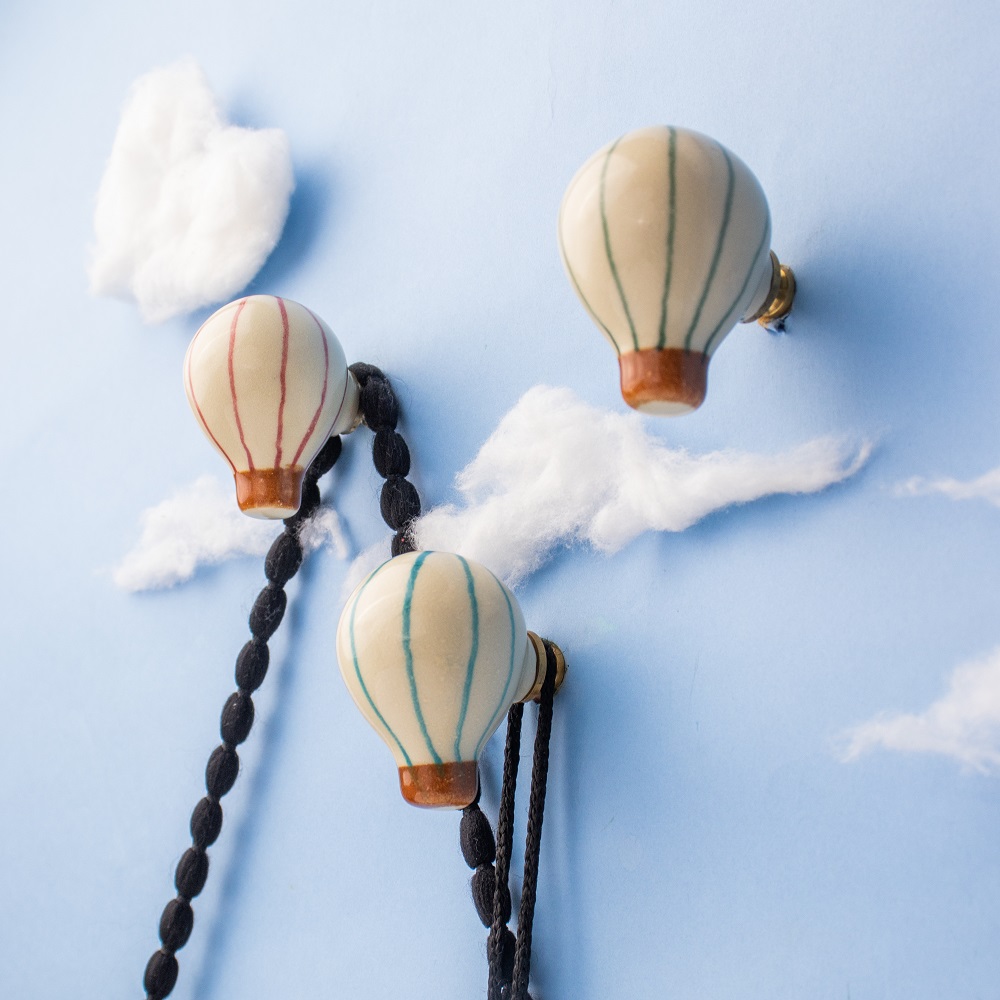 Multicolor Ceramic Hot Air Balloon Cloud Modern Kids Wall Hook-6 Pieces. This Hook is Strong Enough to Hold Your Cloths, Keys, Tea Cups, Coffee Mugs, Hand Towels Etc.