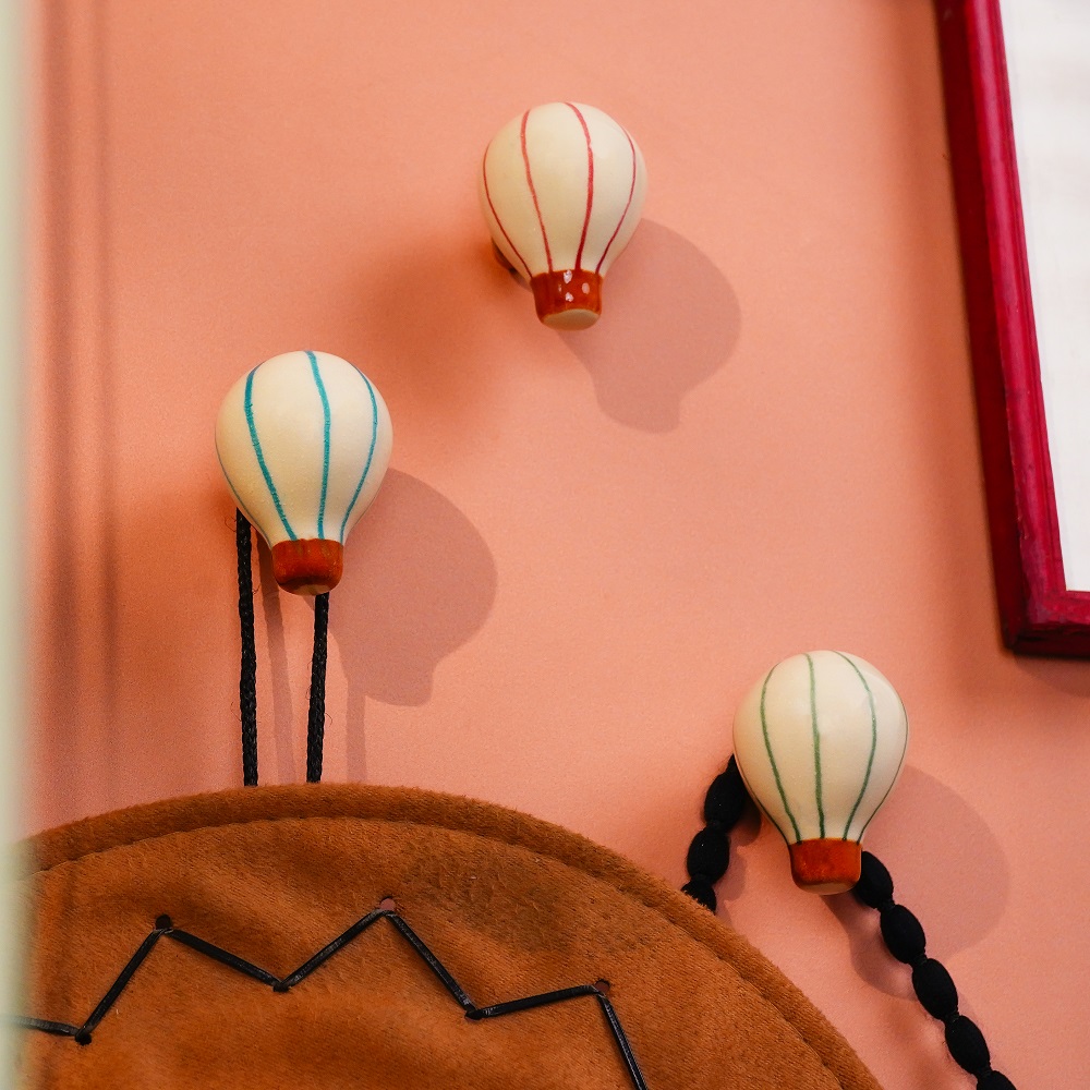 Add a burst of color and fun to your child’s space with the Multicolor Ceramic Hot Balloon Modern Kids Wall Hook – Set of 3. These handcrafted wall hooks feature whimsical hot air balloon shapes, beautifully painted in bold, cheerful colors. Made from high-quality ceramic, they’re designed to not only bring a playful vibe to walls but also to function as everyday storage. Whether used in a bedroom, playroom, or creative corner, these hooks help keep things tidy while enhancing the décor with a sense of wonder and adventure.