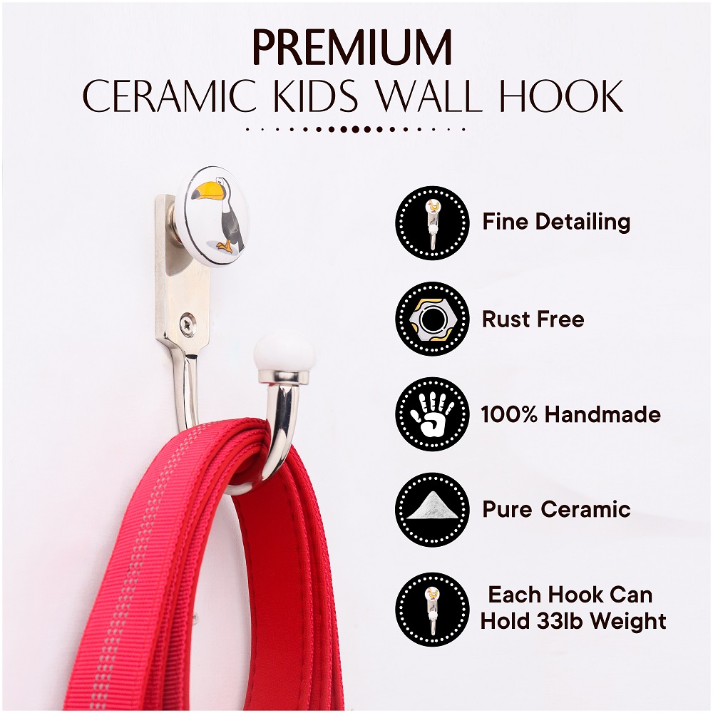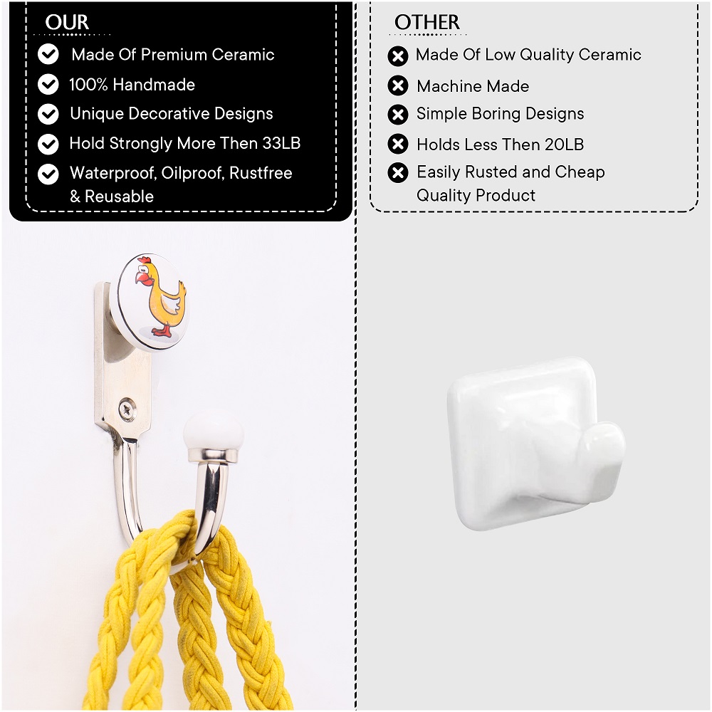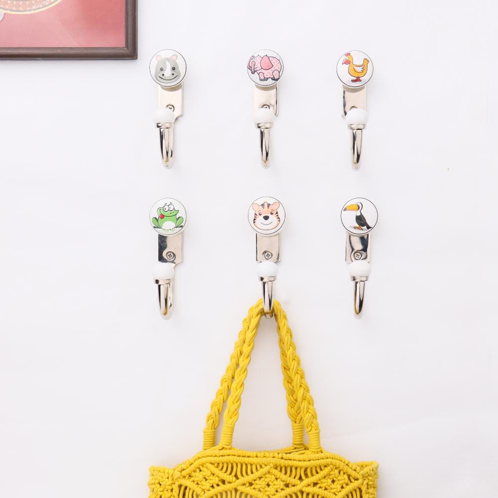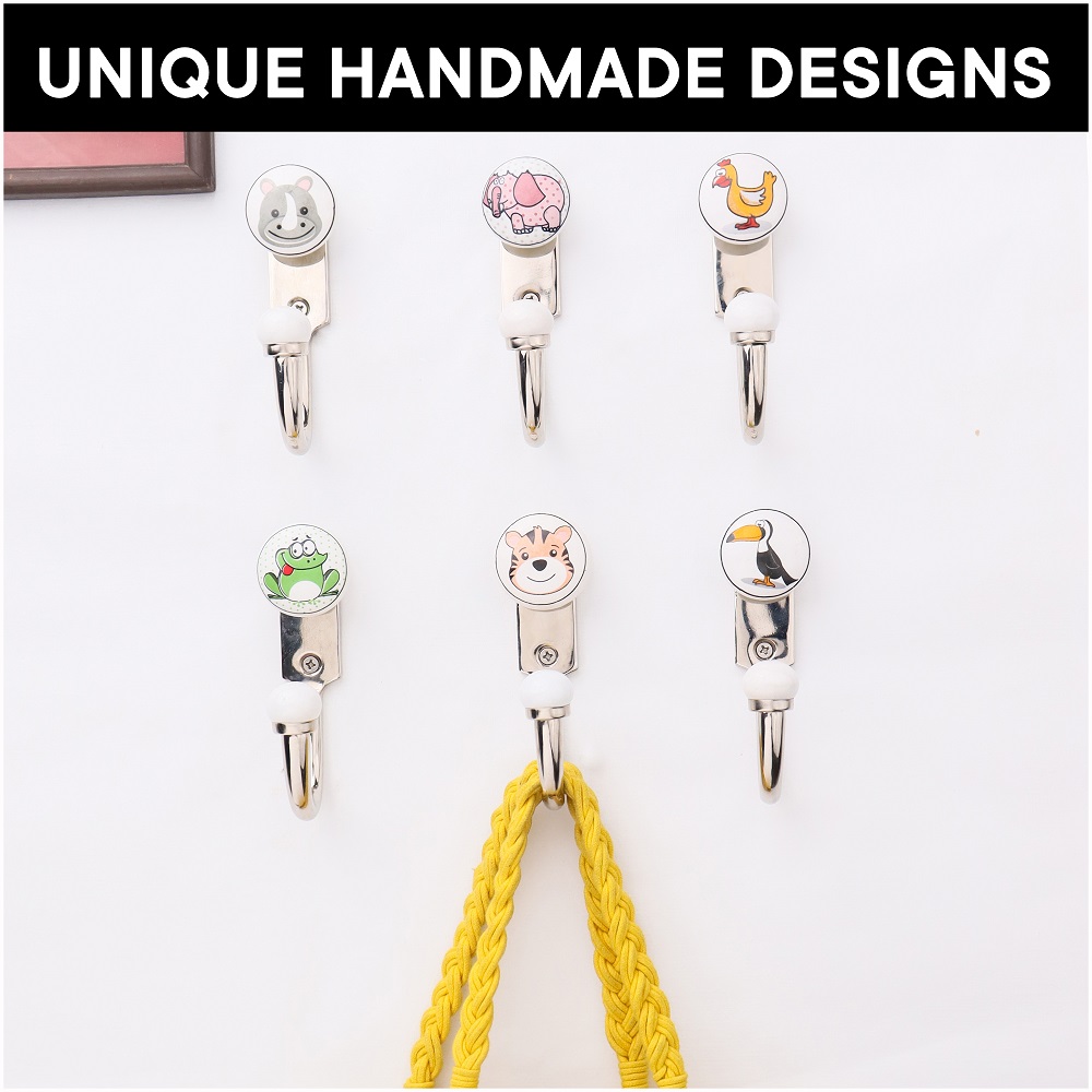 Multicolor Handmade Ceramic Animals Kids Wall Hooks Set of 6. When Put on Wall or Cabinet It is An Art in Itself. This Hook is Strong Enough to Hold Your Keys, Tea Cups, Hand Towels, Cloths Etc.