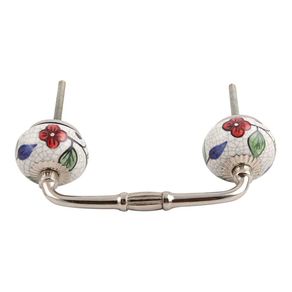 Multicolor Leaves Crackle Ceramic Bridge Handle. Ideal for Drawer, Dresser, Cabinet, Wardrobe, Cupboard and Almirah.
