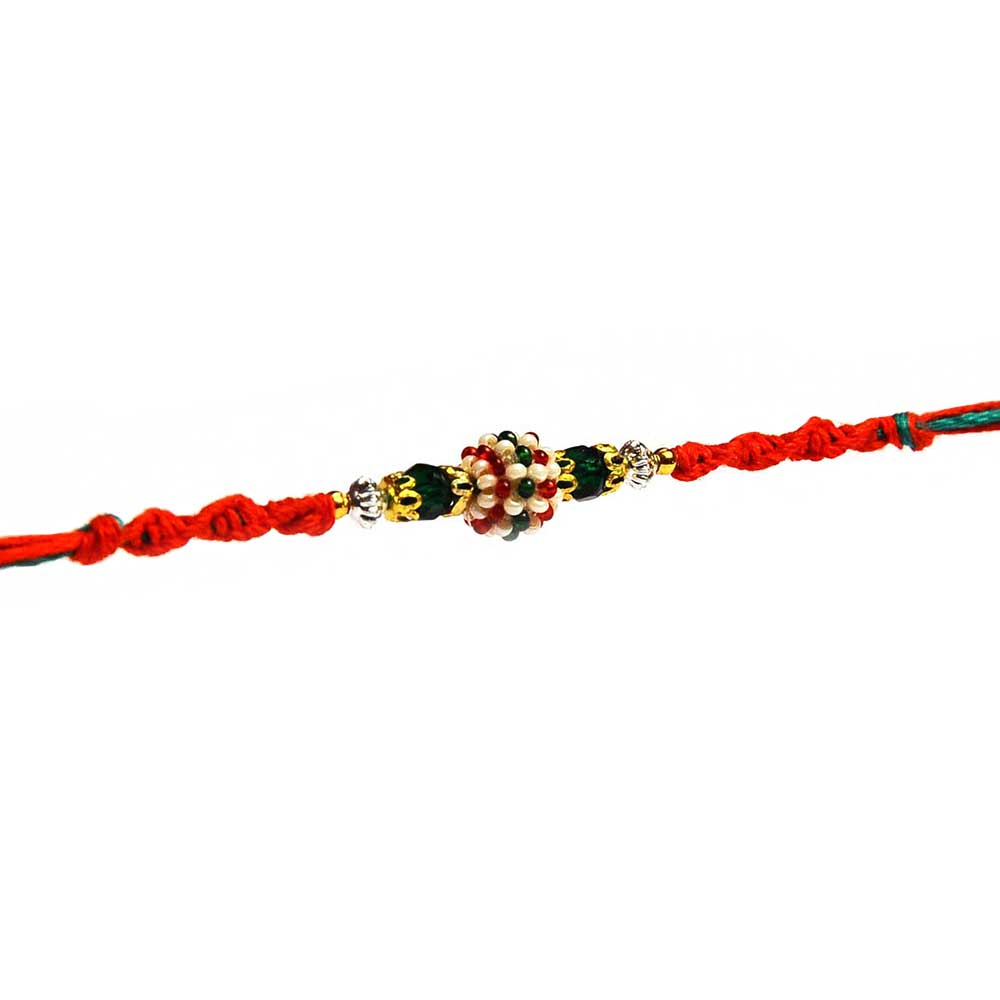 Multicolor Pearl Bead with Green Crystal Beads Rakhi