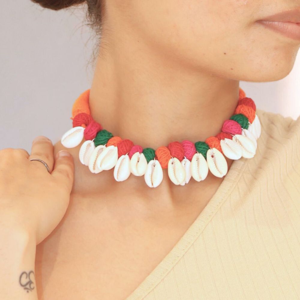 Pair this choker with solid kurtas, summer dresses, or Indo-western outfits, and store it flat in a dry pouch to protect the pom poms and shells.