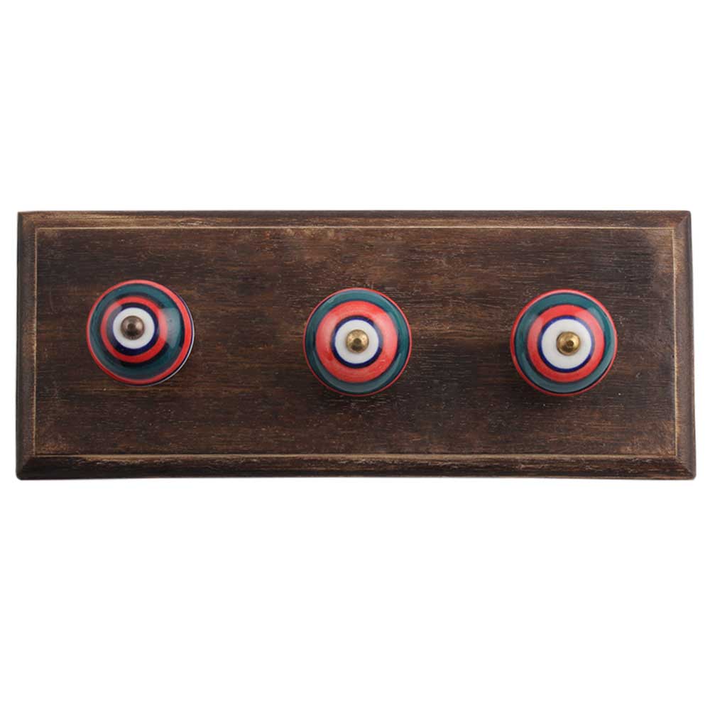 Multicolor Strip Wooden Hooks . A Perfect Complement to the Soft Tone of the Wood are these White Traditional Hat Coat Hook Made of Genuine Porcelain and Brass. It can be use to Hang Jewellery, Leashes, Towels, Scarves, Light Weight Sweaters, Caps Etc.