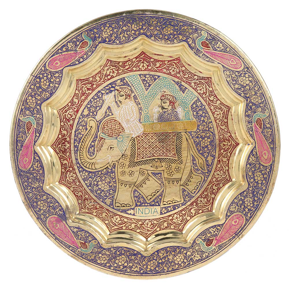 Handmade brass wall hanging metal brass plate, wall showpiece with bidri work decoration and painted elephant design for wall, room, home decoration or as a gift for your friends and family.