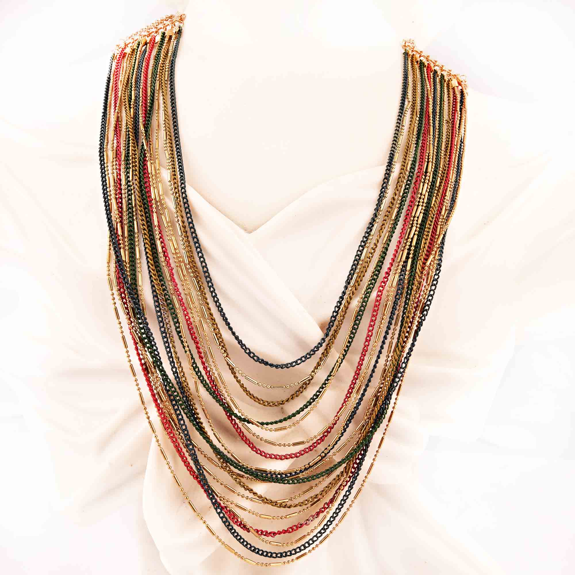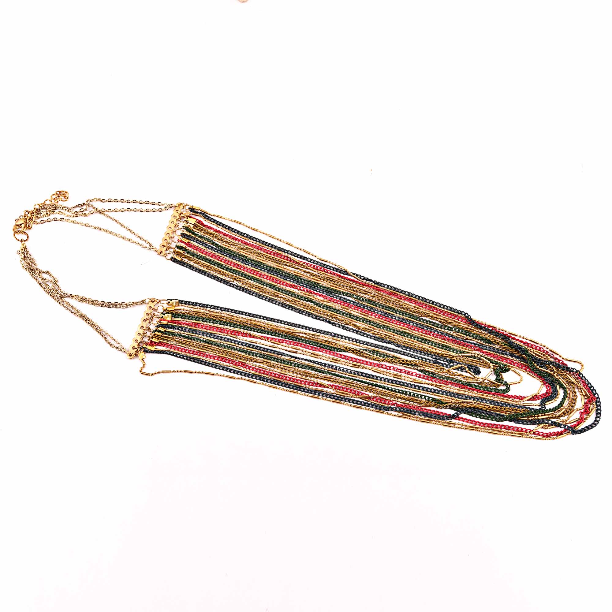 Multicolored Layered Necklace New Beautiful Jewellery. Seed Beads, Cotton With Rose Gold Plated Tie Back.