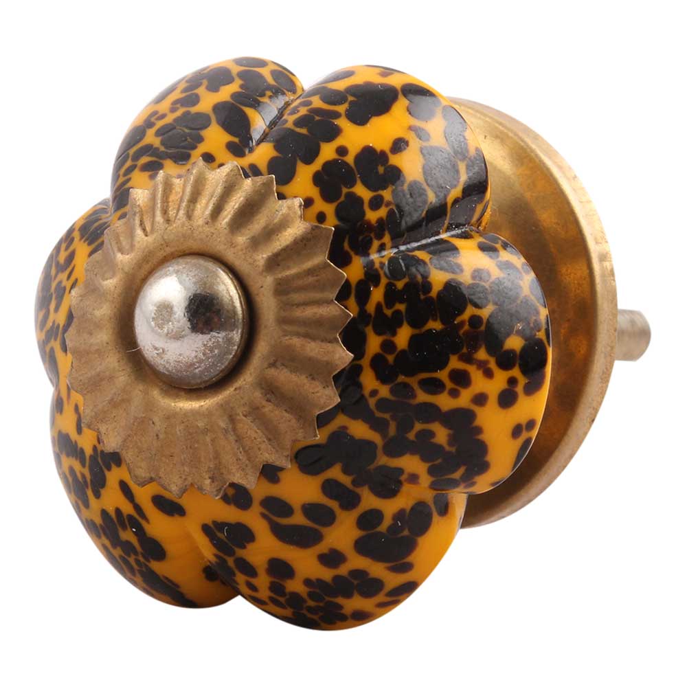 Mustard and Black Melon Glass Knobs. Ideal for Drawer, Dresser, Cabinet, Wardrobe, Cupboard and almirah