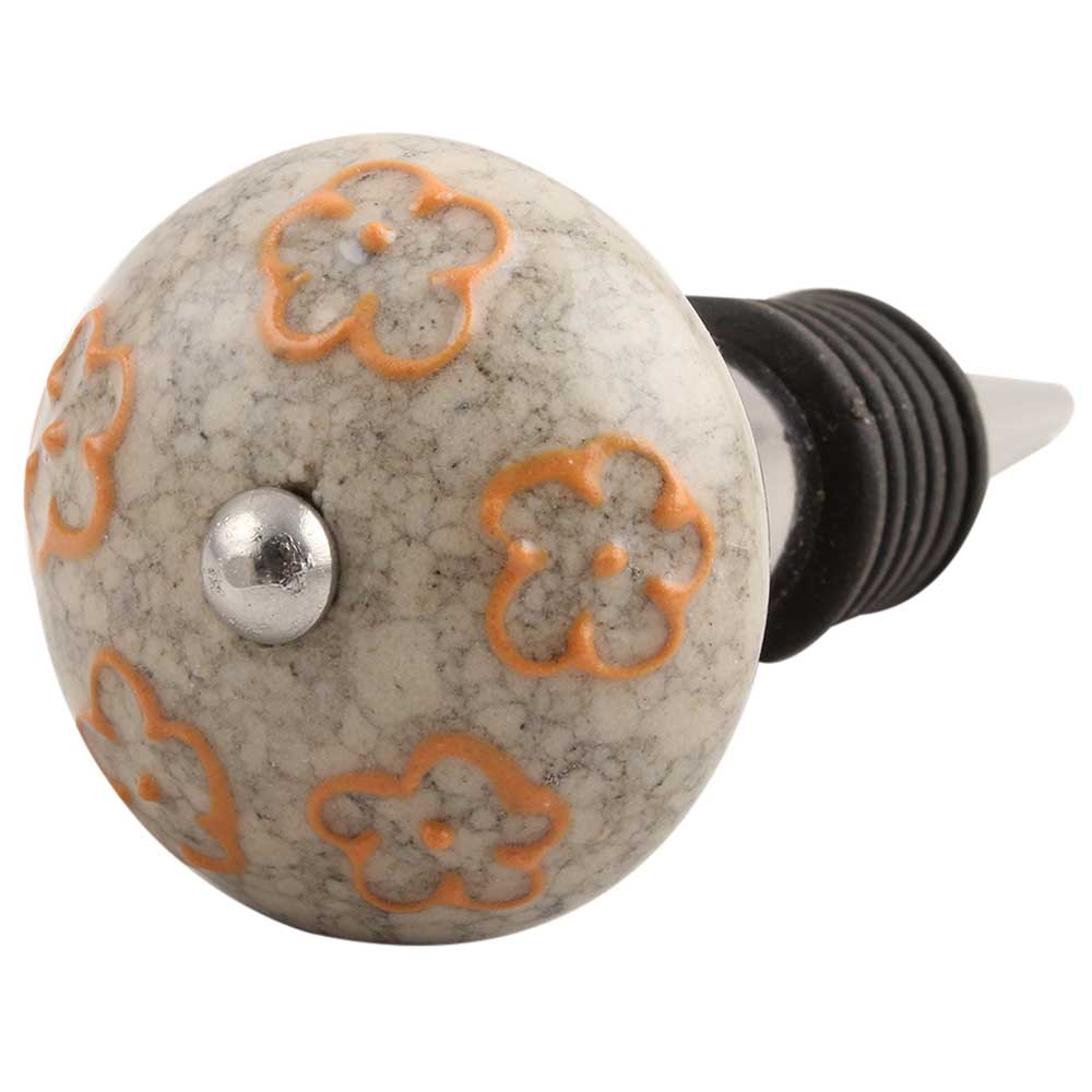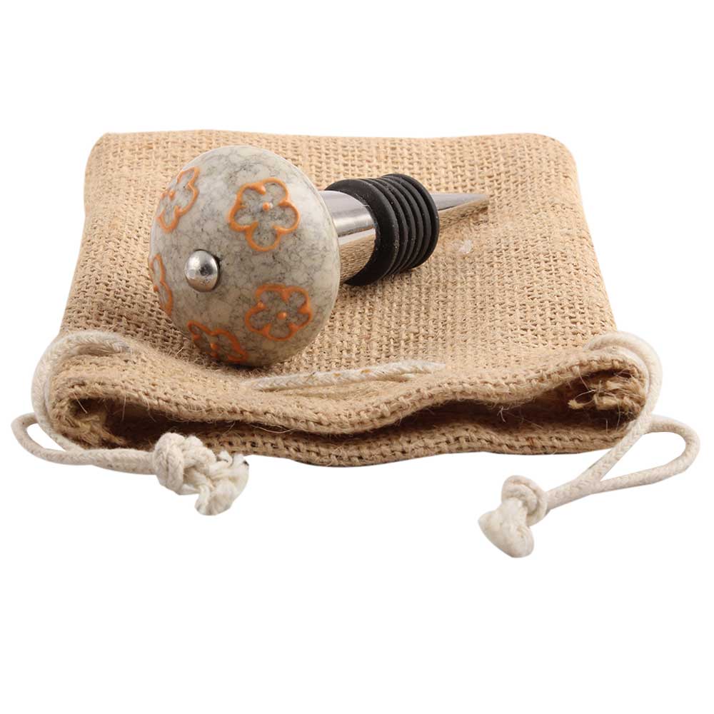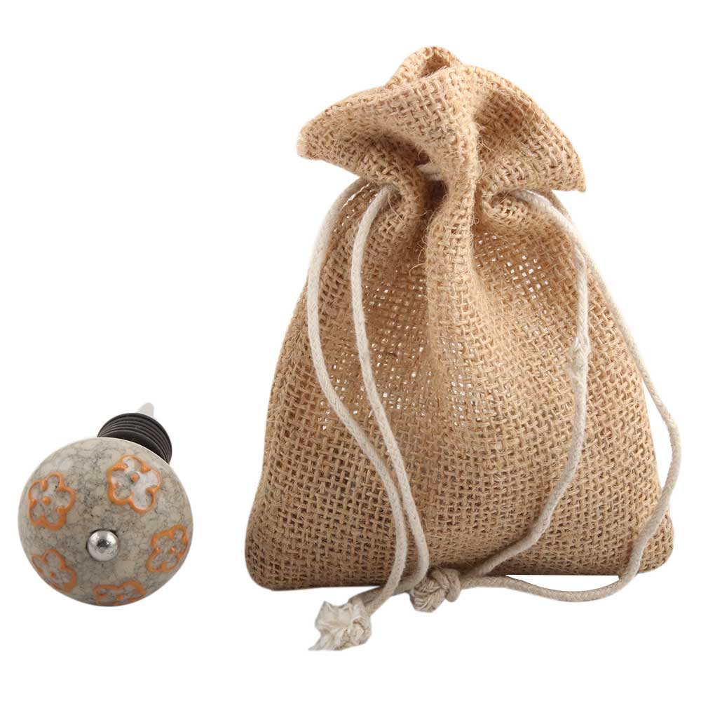 Mustard Floral Crackle Ceramic Wine Stopper.zinc alloy wine bottle stopper with attractive Jute Bag Packaging.