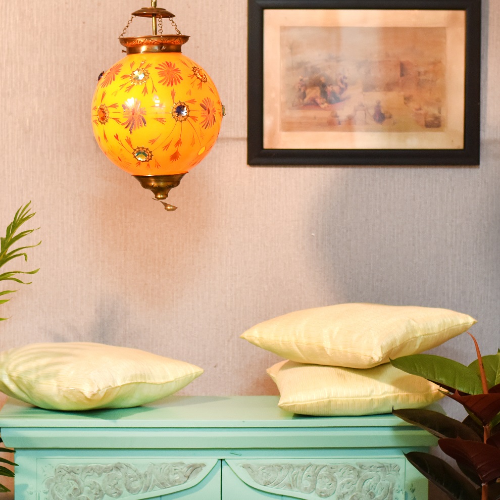 Mustard Glass Hanging Globe Lamp.