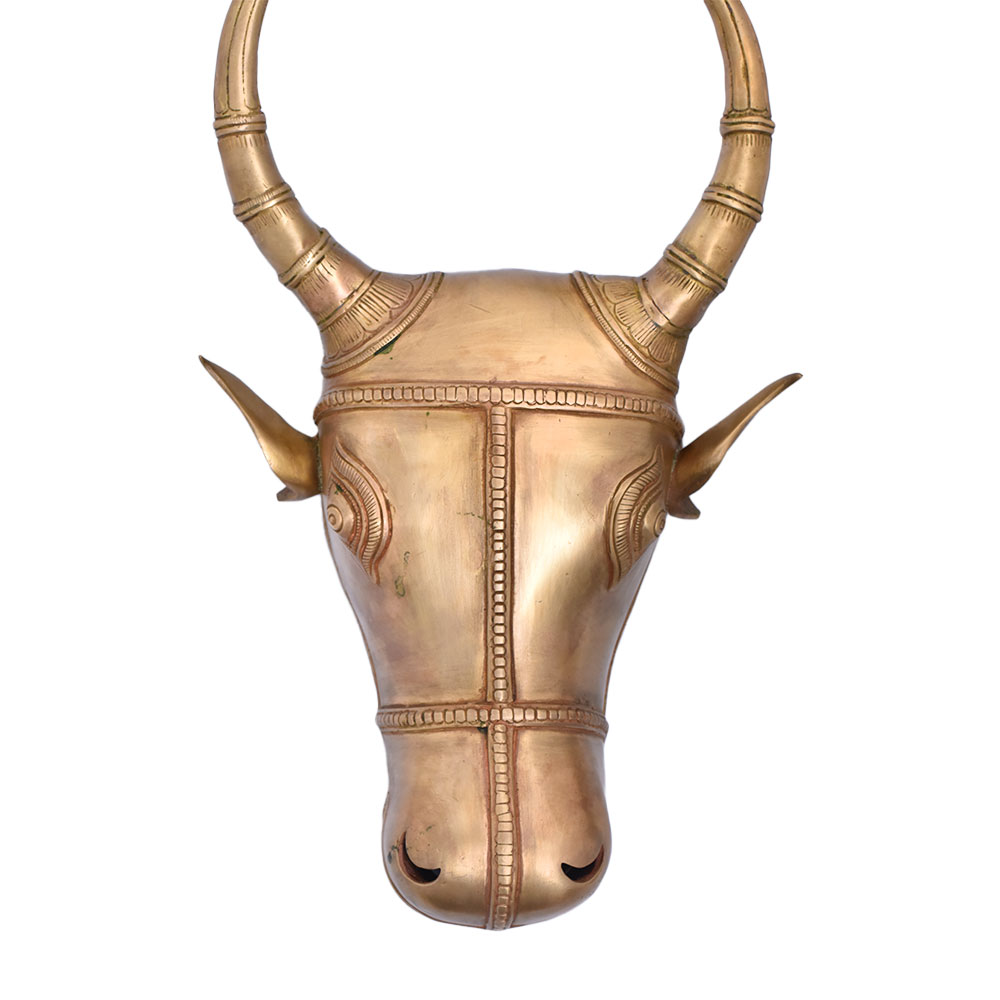 In rural villages, Maisandaya or Nandikona is important because it symbolizes the strength and spirit of the earth. Shiva's mount or vahana is called Nandi. Although he is portrayed as a bull, in South Indian iconography, he may also take on a human form with a bull's head. Nandi is a symbol of virility, strength, and fertility because he is the protector of Kailash, the residence of Shiva and Parvati. He is highly revered throughout India, and Shaivite temple entrances frequently feature images of him. In Karnataka and Andhra Pradesh, the Nandi is frequently depicted as Nandikesvara. You can hang it as a decorative wall accent in your living room or foyer. It can be used as table decor and can be laid out perfectly flat.