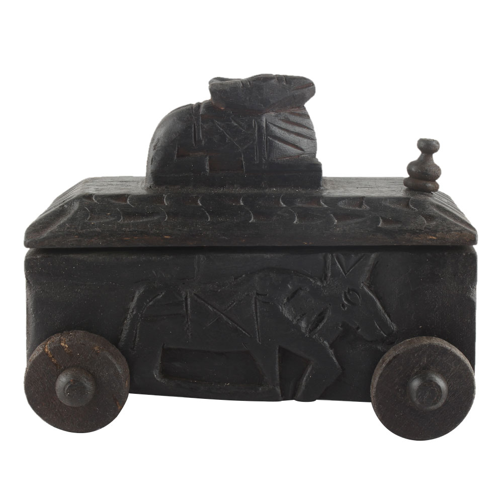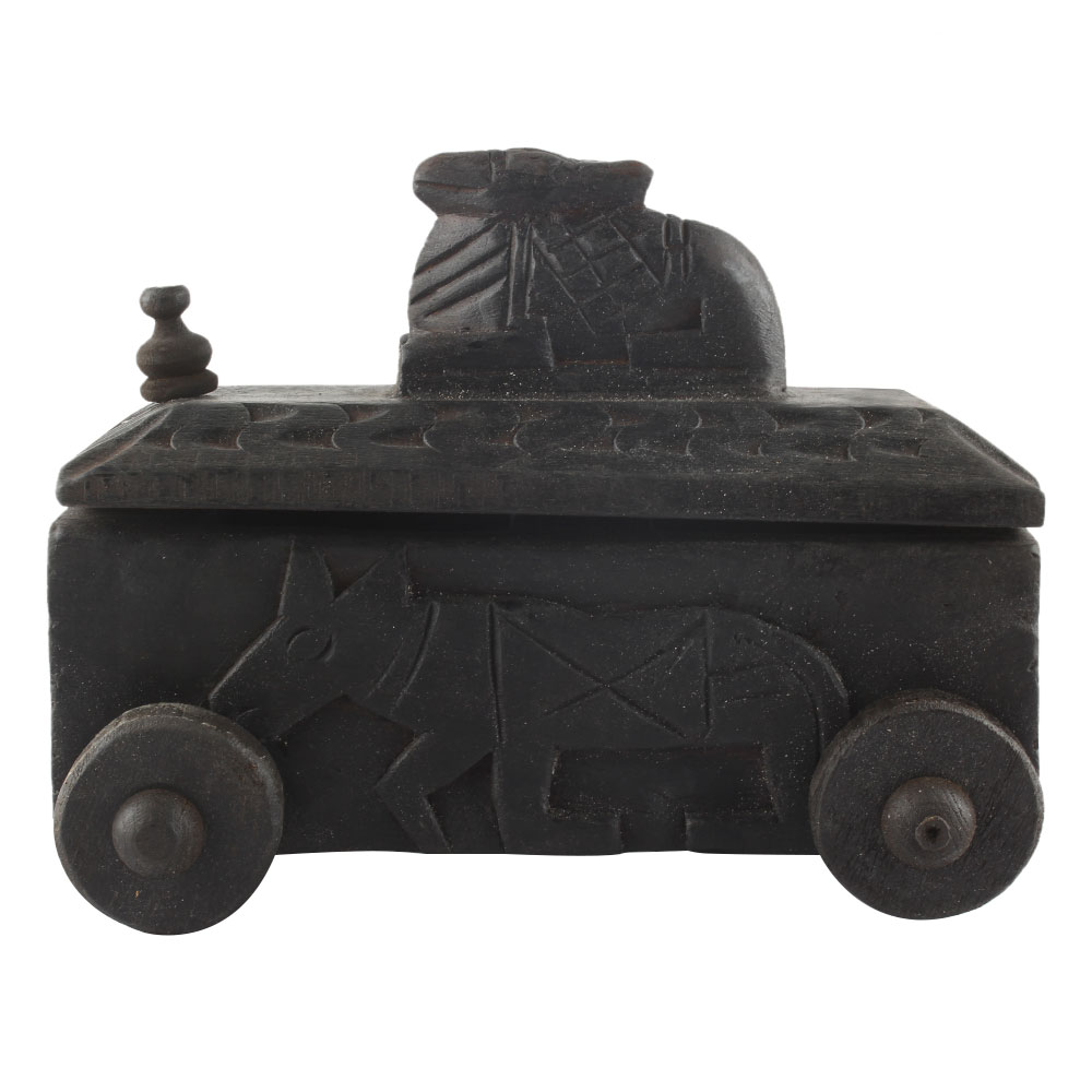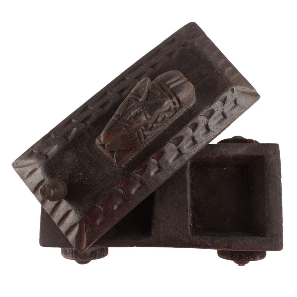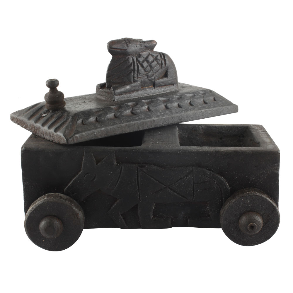 Nandi Wooden Box South Indian Spice Box . Ceramic Drawers in Wooden Frame. The Spice Boxes are designed with different patterns. These boxes are made using natural wood which does not harm the purity of spices.