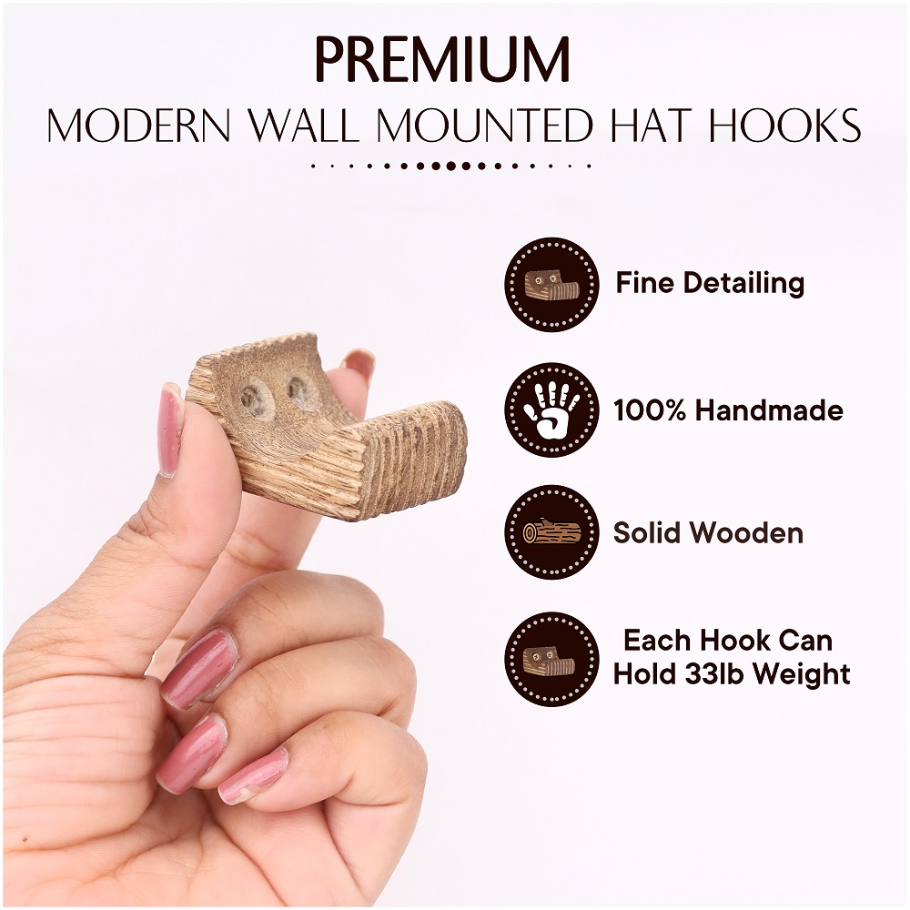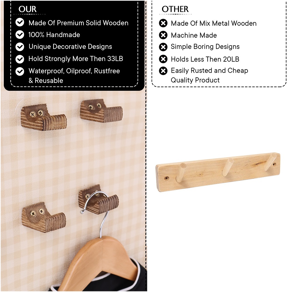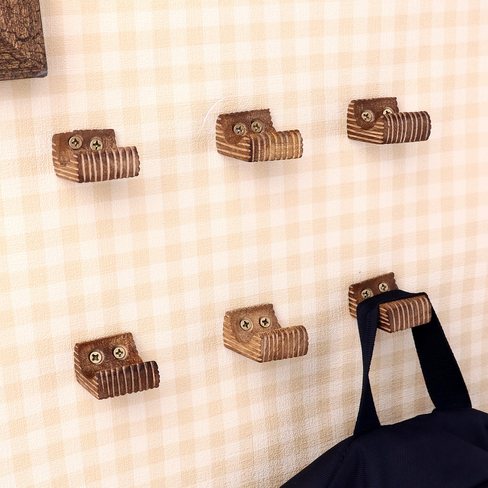 Natural Brown Wooden Wall Hooks-6 Pieces. This Hook is Strong Enough to Hold Your Cloths, Keys, Tea Cups, Coffee Mugs, Hand Towels Etc.