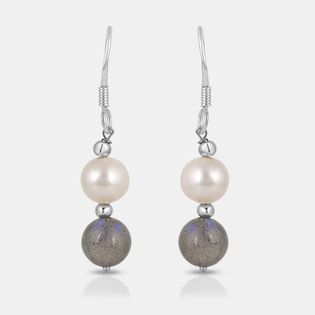 The Natural Pearl & Labradorite Stone Dangle Earrings embody a perfect harmony of elegance and mysticism. Handcrafted from premium brass with a pure 925 silver finish, each earring features the serene beauty of natural pearls paired with the iridescent shimmer of labradorite stones. Designed for women who appreciate refined luxury and artisanal craftsmanship, these earrings evoke celestial calm and sophistication — making them a timeless addition to any jewelry collection.