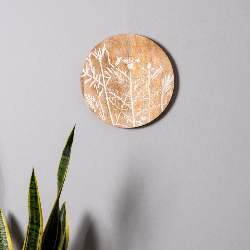Each plate tells its own story through artisan-carved floral motifs, offering a natural blend of texture and subtle color contrasts.