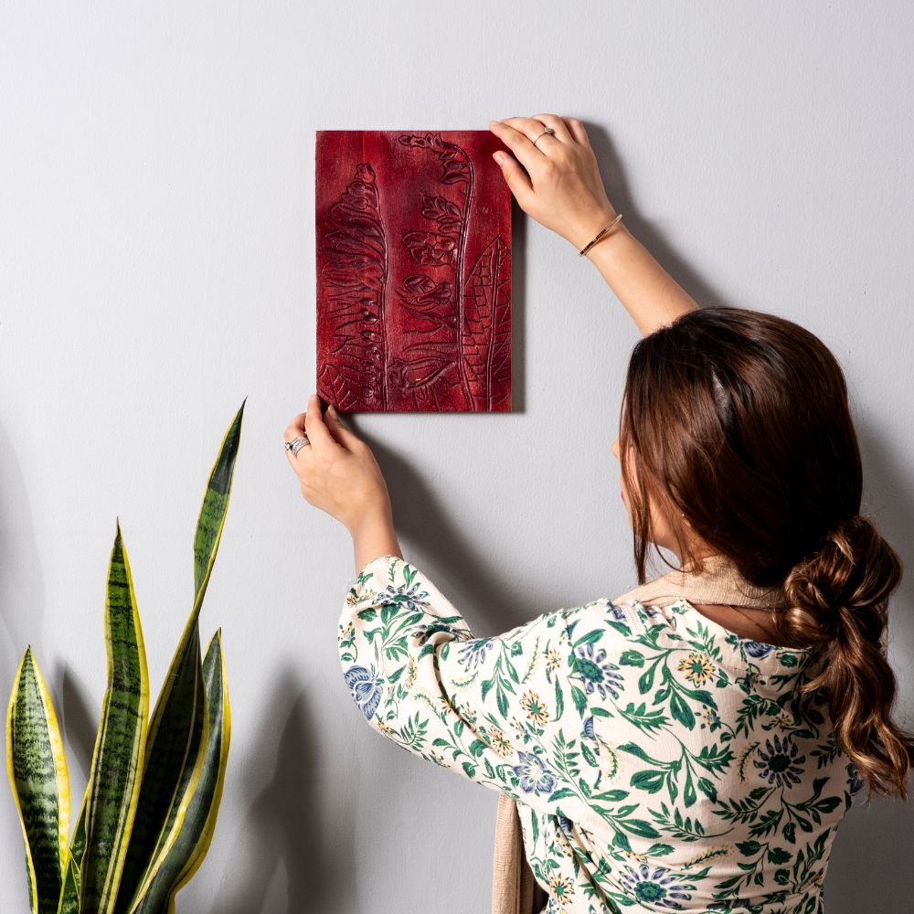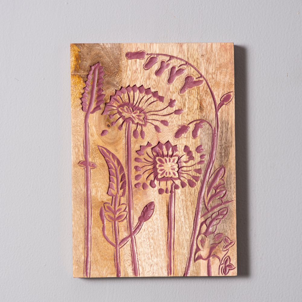 Bring home the timeless charm of nature with the Natures Canvas Wooden Wall Panel, a handcrafted piece featuring delicate floral carvings on solid wood. Designed with a warm blend of pink and red hues, this panel radiates rustic elegance while celebrating the beauty of artisanal craftsmanship. Perfect for adding a natural touch to modern or traditional interiors.