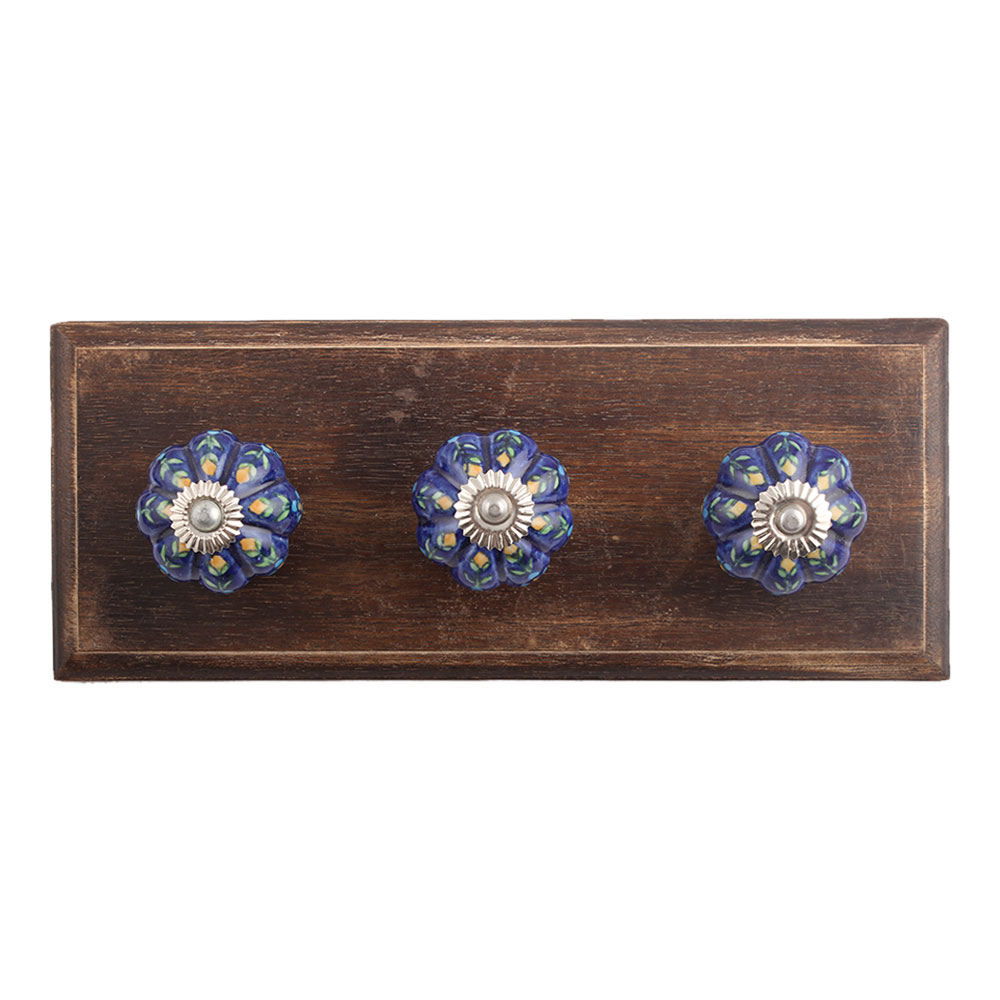 Natures Palette Ceramic Wooden Hook. A Perfect Complement to the Soft Tone of the Wood are these White Traditional Hat Coat Hook Made of Genuine Porcelain and Brass. It can be use to Hang Jewellery, Leashes, Towels, Scarves, Light Weight Sweaters, Caps Etc.