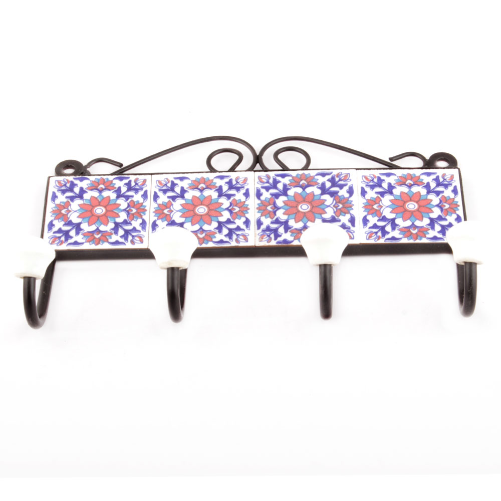 Navy Blue And Red Sunflower Ceramic Tiles Hooks Online. When Put on Wall or Cabinet it is an Art in itself. The Metal Part of this Hook is Black Powder Coated.