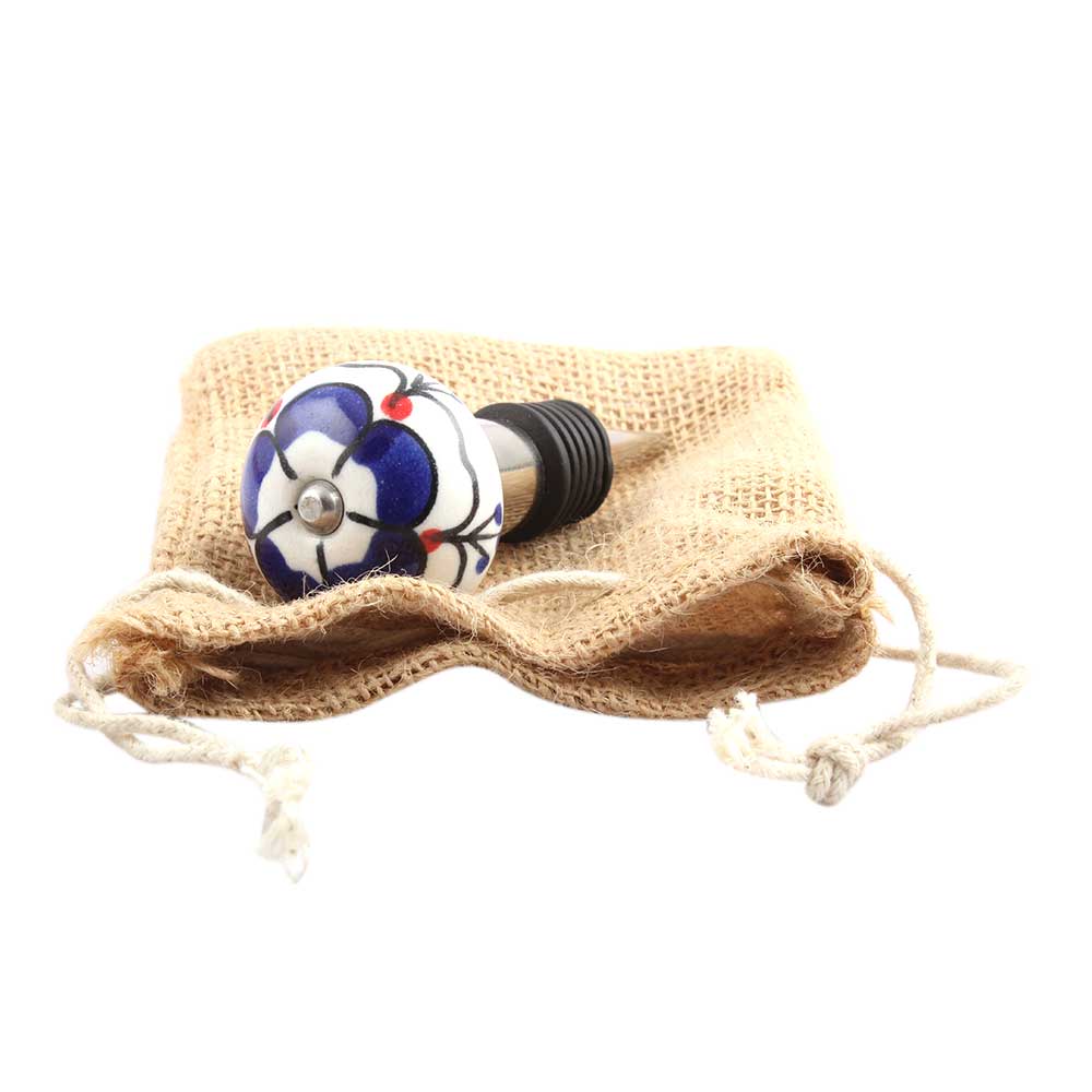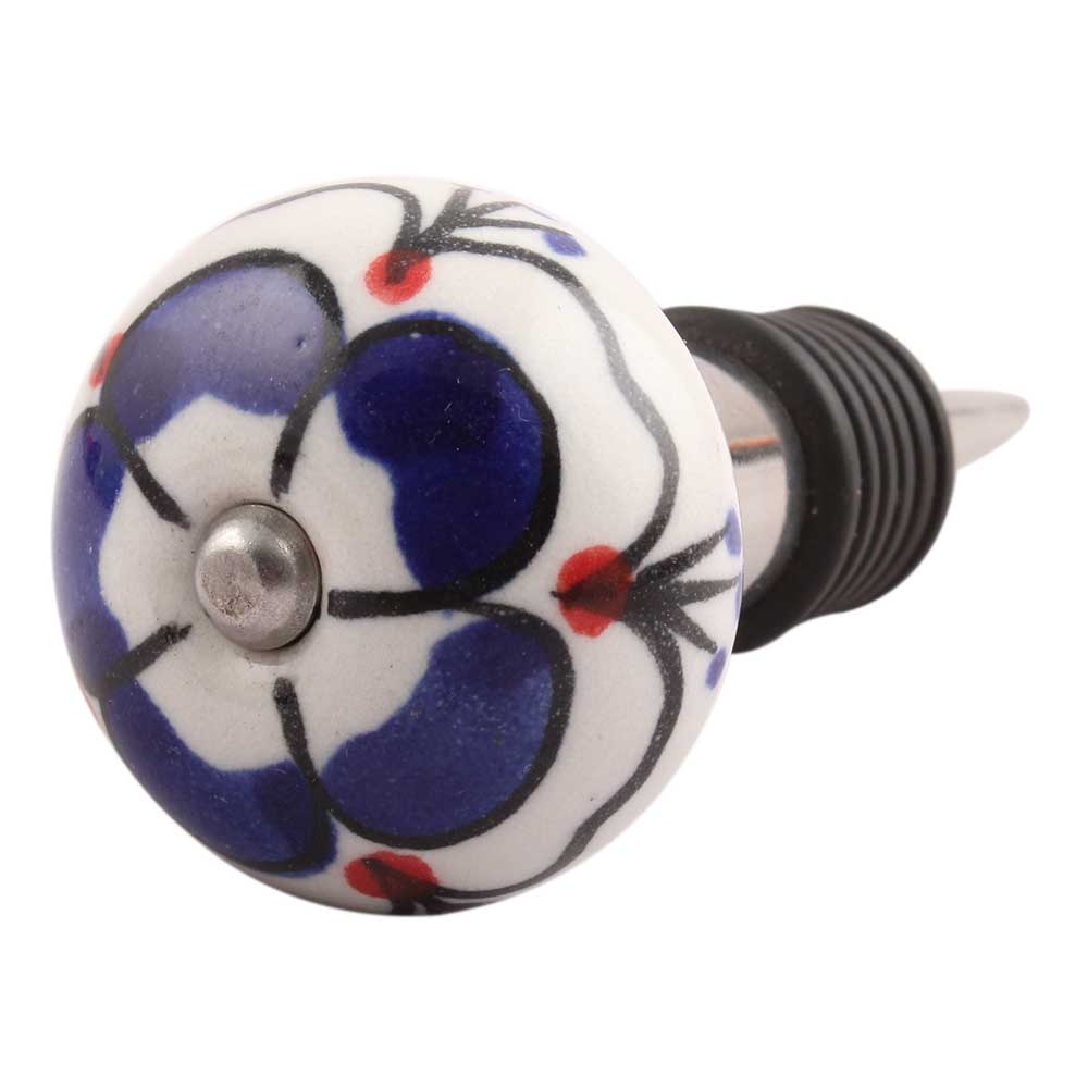 Navy Blue Canterbury Bells Ceramic Wine Stopper.zinc alloy wine bottle stopper.