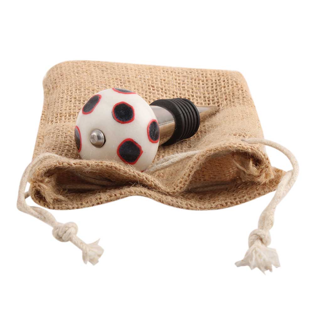 Navy Blue Dot Ceramic Wine Stopper.zinc alloy wine bottle stopper with attractive Jute Bag Packaging.