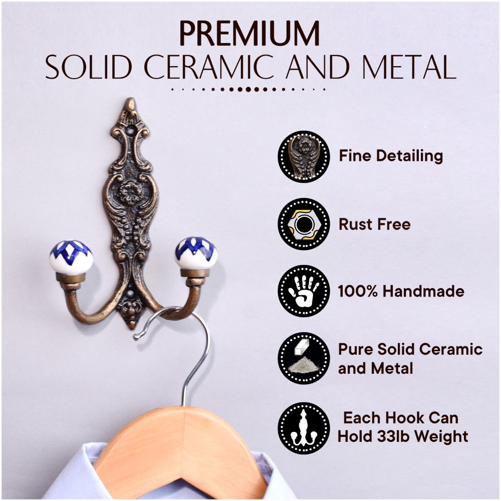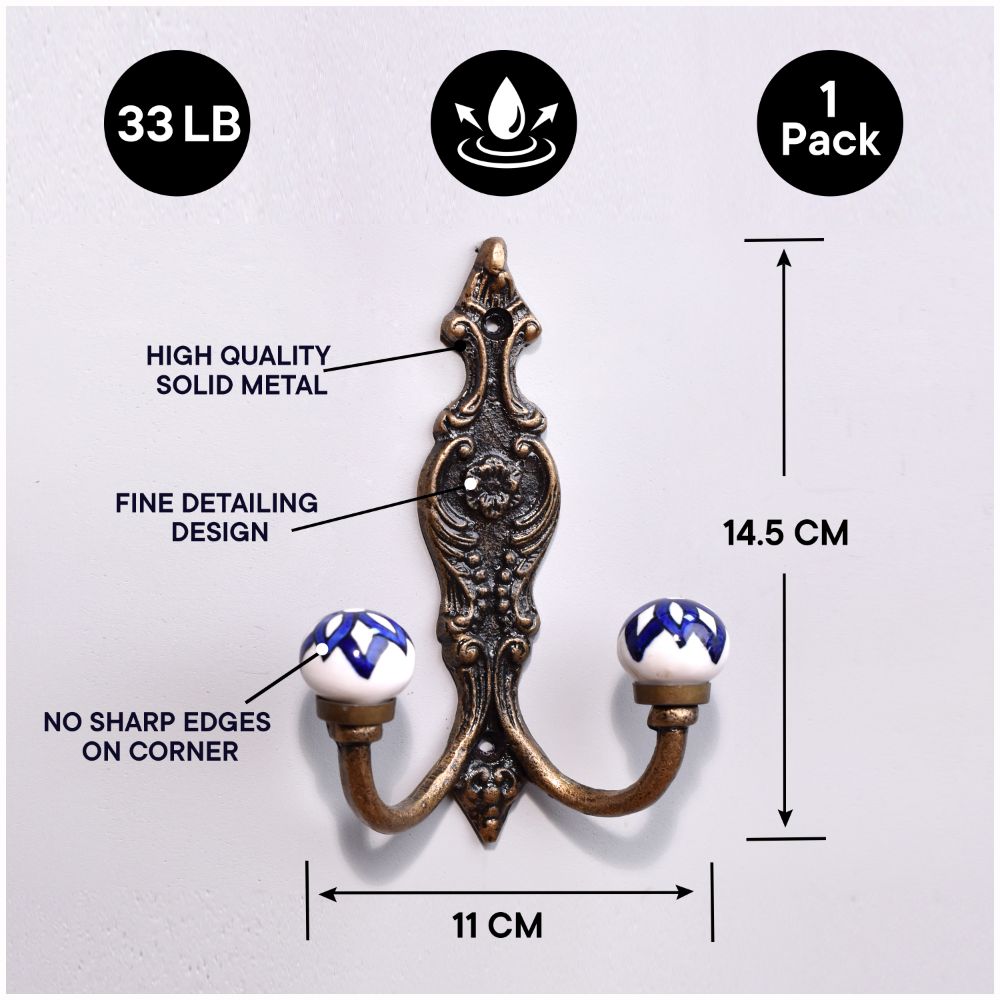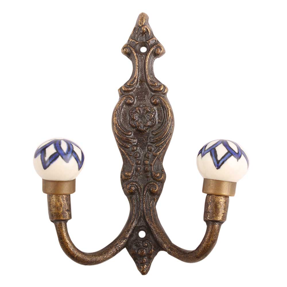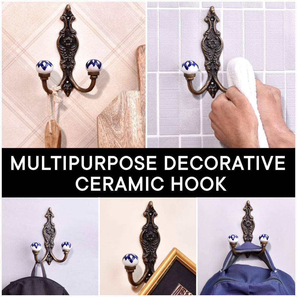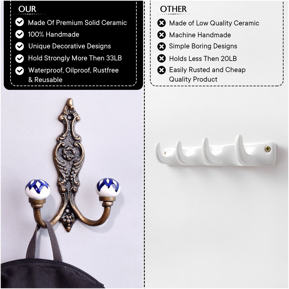 Navy Blue Floral Ceramic Iron Hook. When Put on Wall or Cabinet It Gives A Sturdy Look. This Hook is Strong Enough to Hold Your Cloths, Keys, Tea Cups, Coffee Mugs, Hand Towels Etc