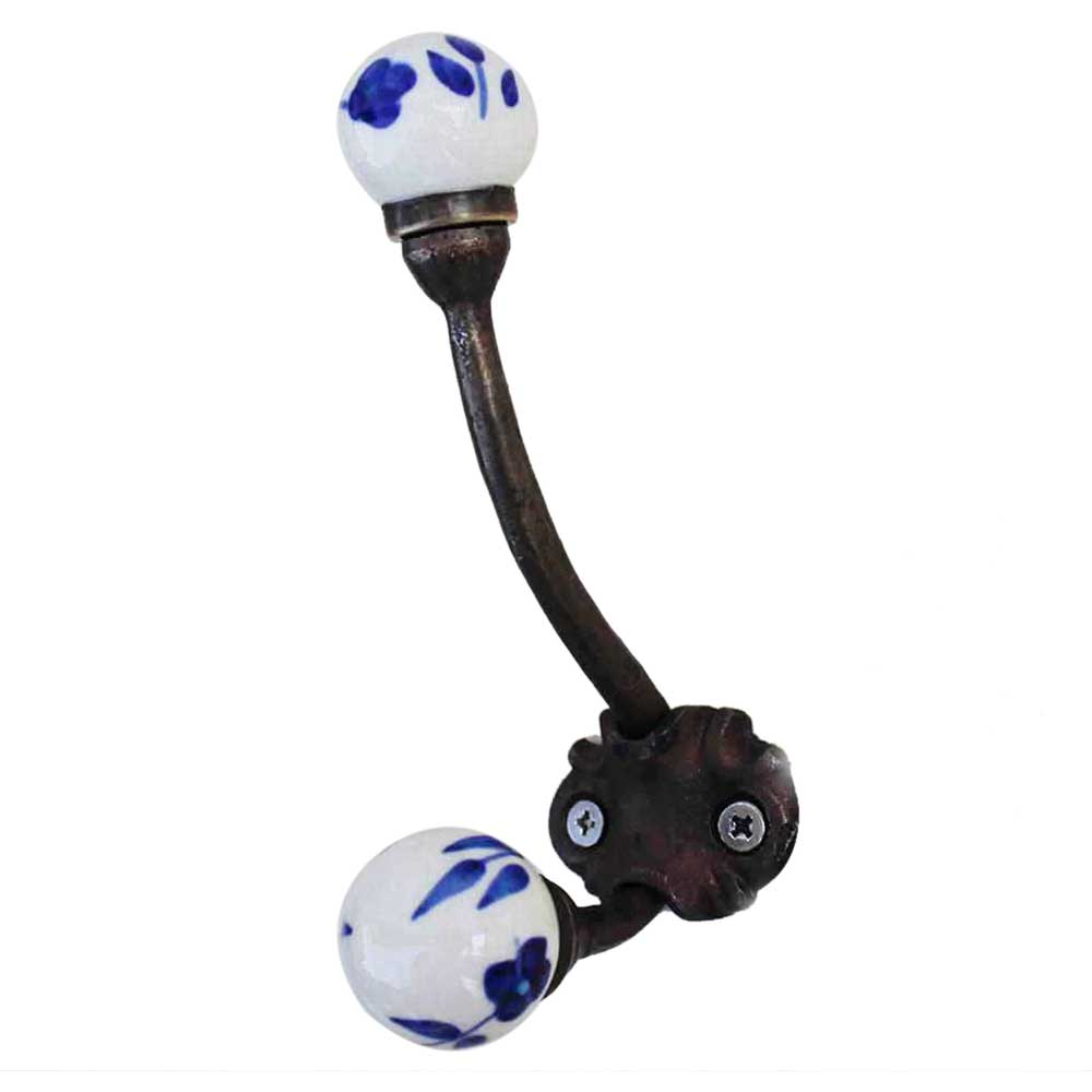 Navy Blue Floral Iron Hook-EHG-27.when put on wall or cabinet it gives a sturdy look. This hook is strong enough to hold your cloths, keys, tea cups, coffee mugs, hand towels etc.