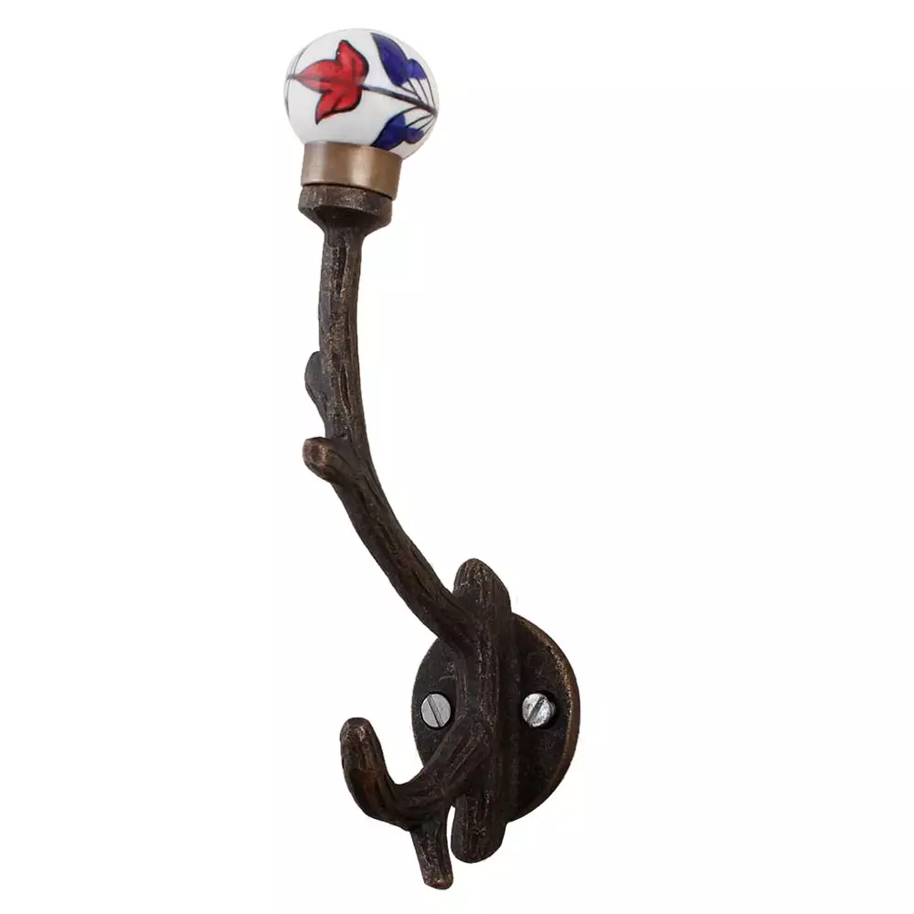 Navy Blue Floral Tree Hook-Ehg-62. When Put on Wall or Cabinet It Gives A Sturdy Look. This Hook is Strong Enough to Hold Your Cloths, Keys, Tea Cups, Coffee Mugs, Hand Towels Etc.