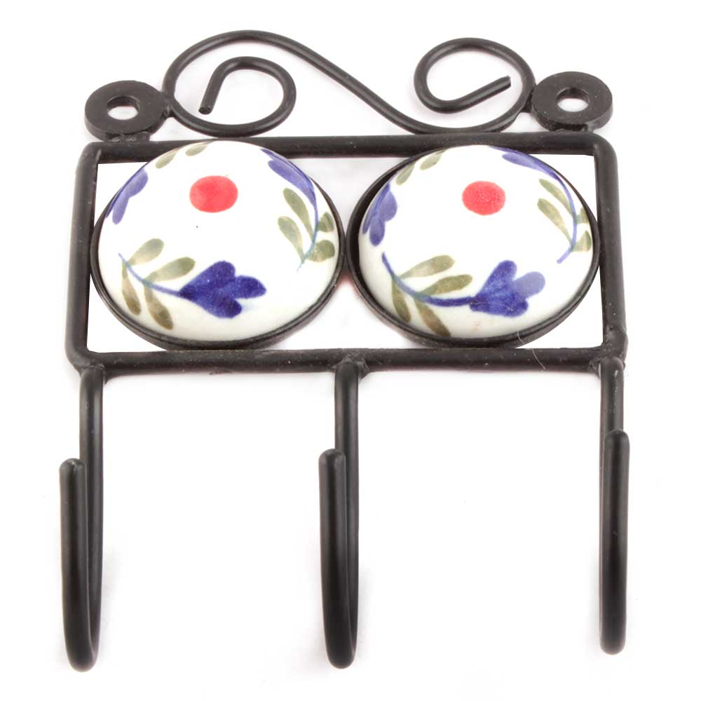 Navy Blue Leaf Ceramic Tiles Hooks. When Put on Wall or Cabinet It is An Art in Itself. The Metal Part of this Hook is Black Powder Coated.