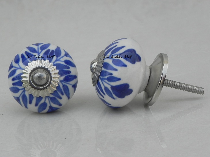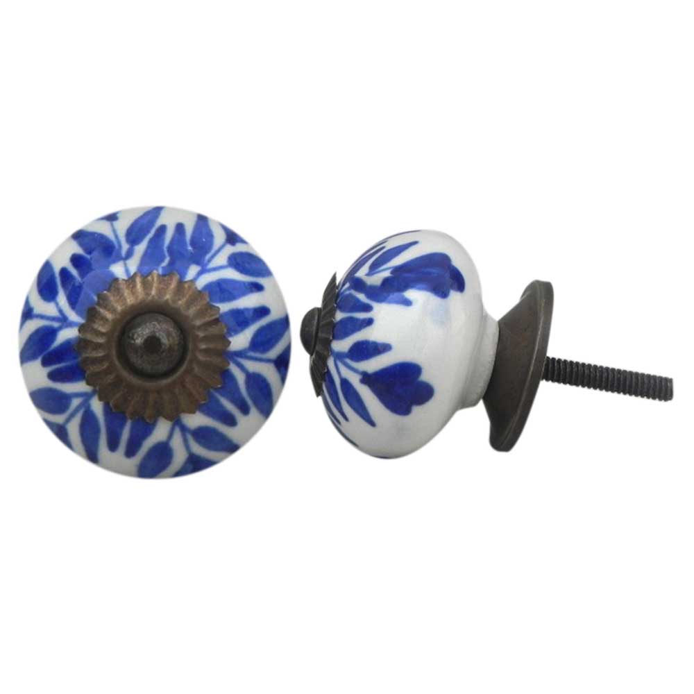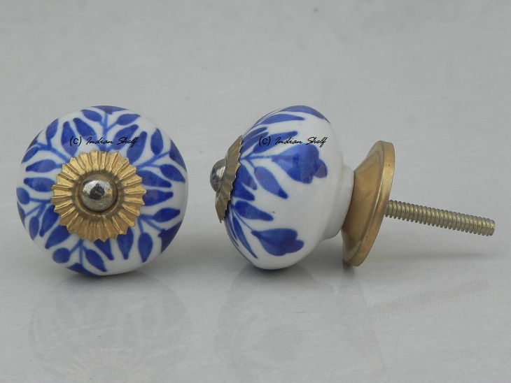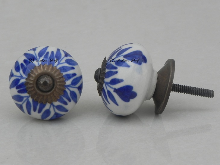 Navy Blue Leaf Ceramic Knob. Ideal for kitchen cabinets, kitchen drawers, dining room, bed room, chest drawers, dressing tables, almirah