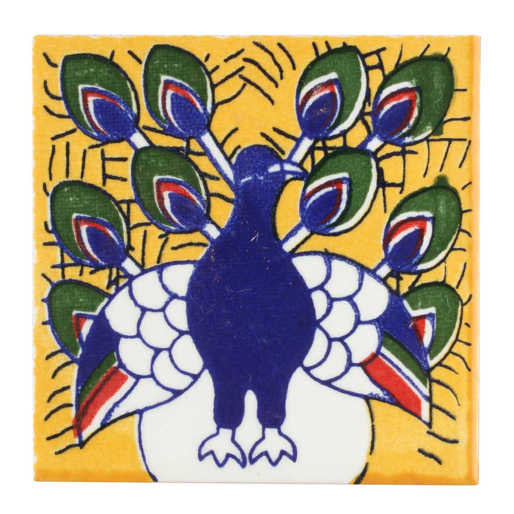 Navy Blue Peacock Ceramic Tiles. This Tiles Can be Used as a Wall Hanging, Good for Decorate Table Desks, Install in Fireplaces, Bathrooms, Kitchens, Splash Guards etc.
