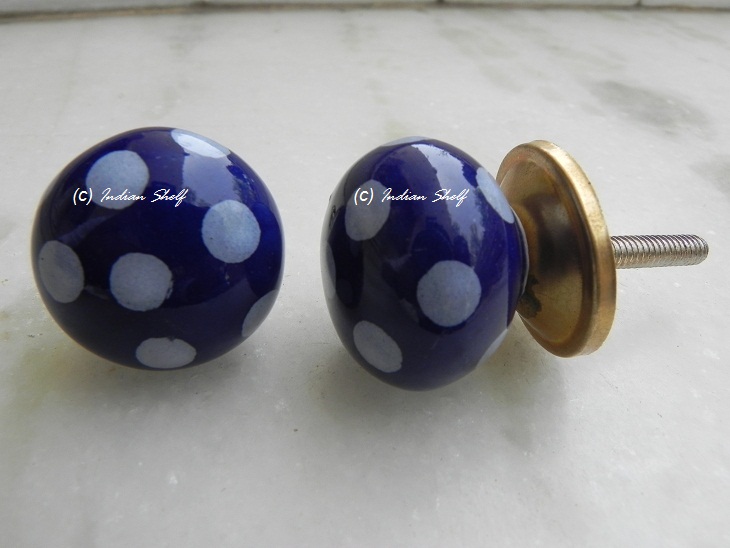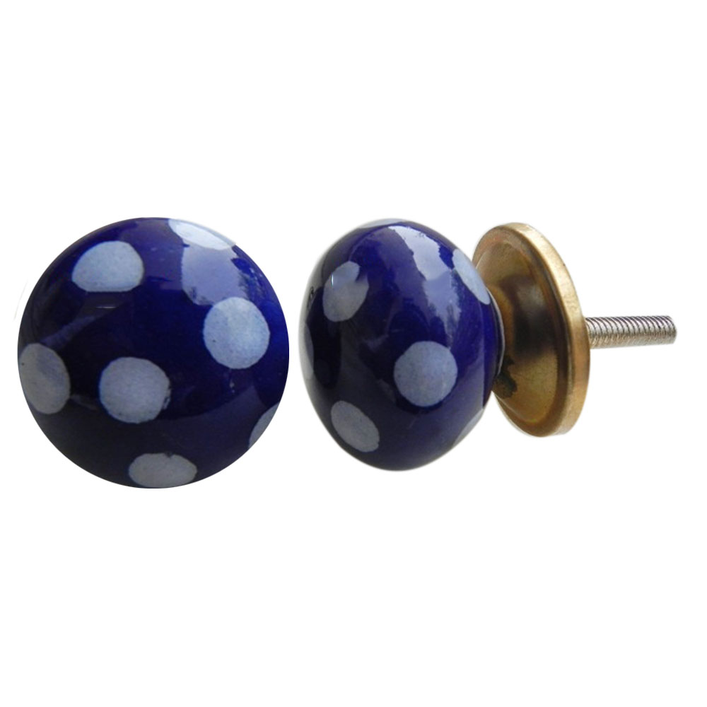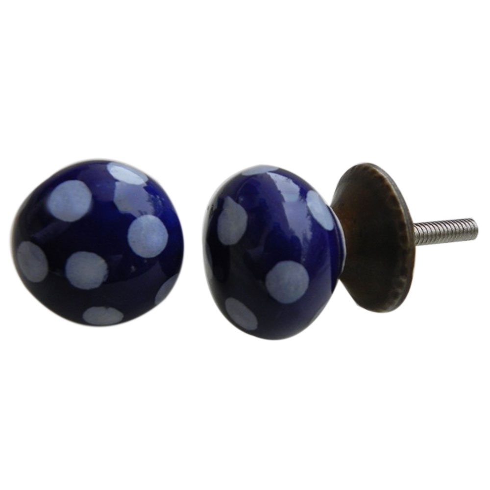 Navy Blue Small Ceramic Polka Knob .Ideal for kitchen cabinets, kitchen drawers, dining room, bed room, chest drawers, dressing tables, almirah