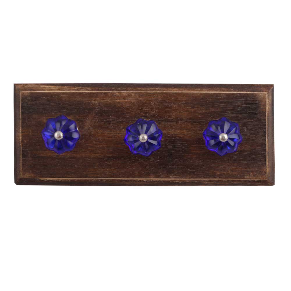 Navy Blue Small Melon Glass Wooden Hook. A Perfect Complement to the Soft Tone of the Wood are these White Traditional Hat & Coat Hook Made of Genuine Porcelain and Brass. It can be use to Hang Jewellery, Leashes, Towels, Scarves, Light Weight Sweaters, Caps Etc.
