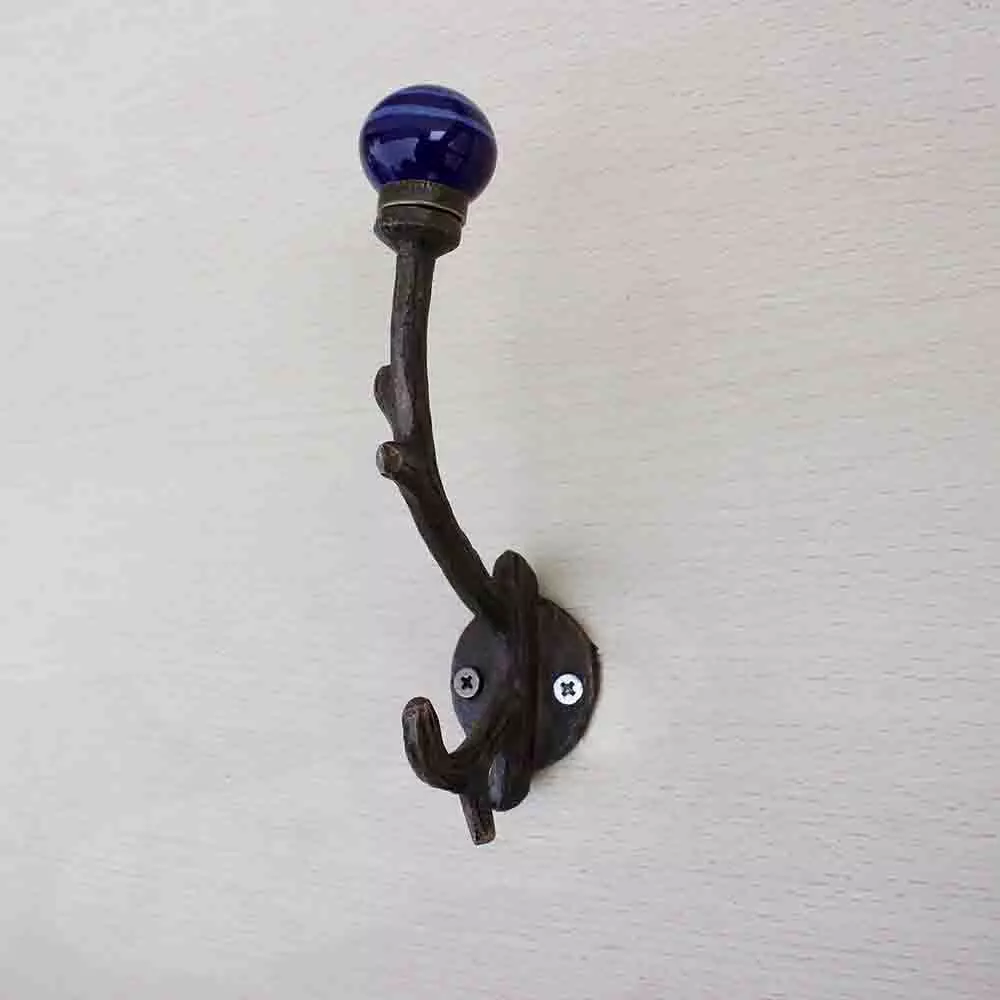 Navy Blue Striped Tree Hook-Ehg-29. When Put on Wall or Cabinet It Gives A Sturdy Look. This Hook is Strong Enough to Hold Your Cloths, Keys, Tea Cups, Coffee Mugs, Hand Towels Etc.