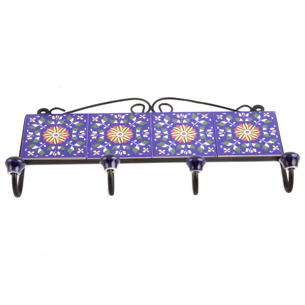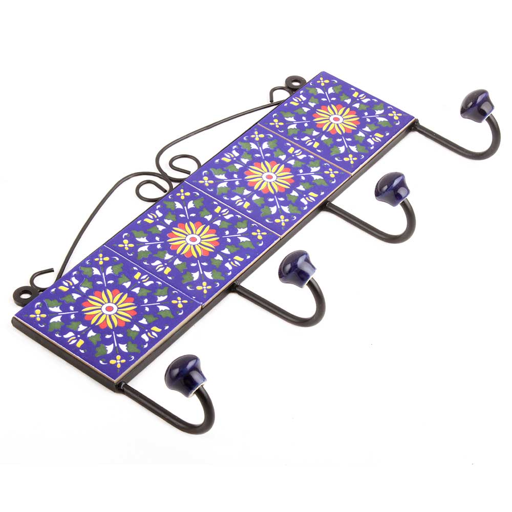 Navy Blue Wheel Tiles Hooks .When put on wall or cabinet it is an art in itself. The metal part of this hook is black powder coated.