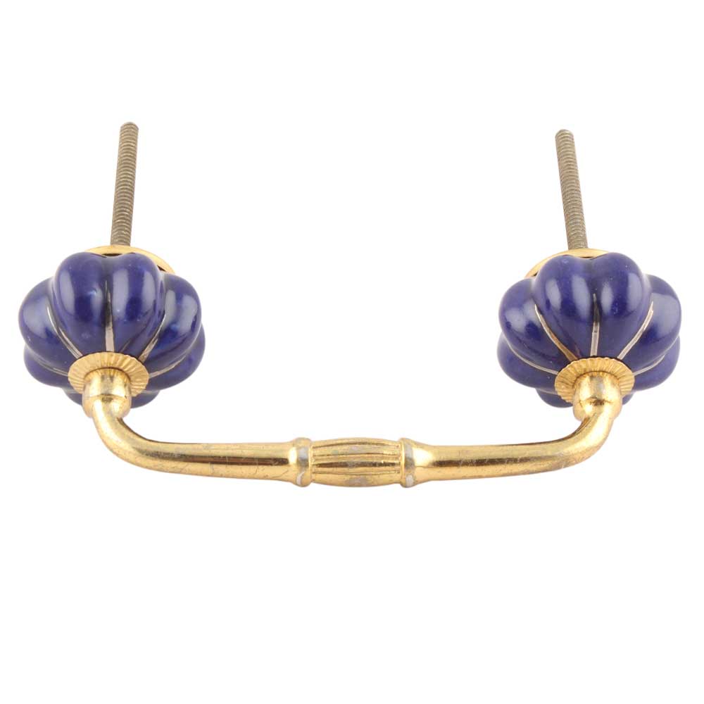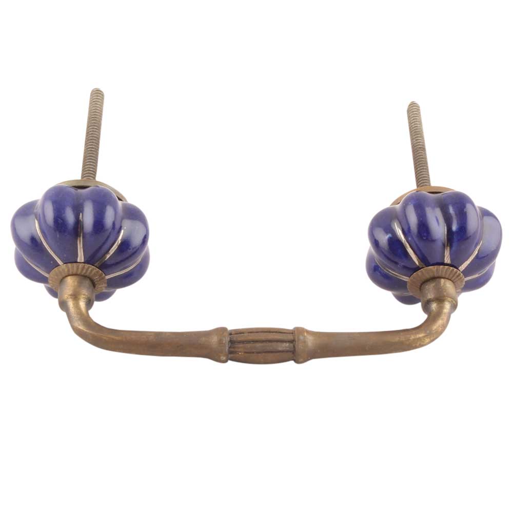 Navy Blue With Silver Line Medium Ceramic Bridge Handle. Ideal for Drawer, Dresser, Cabinet, Wardrobe, Cupboard and Almirah etc.