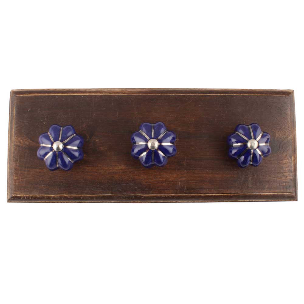 Navy Blue With Silver Line Medium Ceramic Melon Wooden Hooks. A Perfect Complement to the Soft Tone of the Wood are these White Traditional Hat and Coat Hook Made of Genuine Porcelain and Brass. It can be used to Hang Jewelry, Leashes, Towels, Scarves, Light Weight Sweaters, Caps etc.