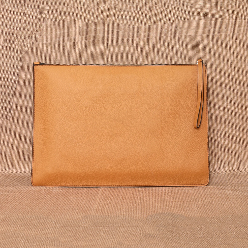 An elegant pebble leather, soft to touch and has a matt finish. Clean with a soft cloth and apply leather cream periodically. Avoid moisture and store in a protective bag.