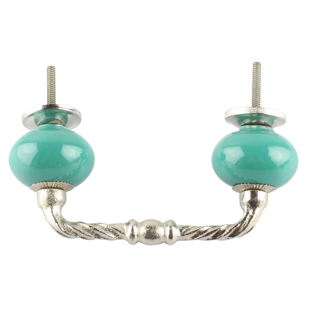 Neon Sea Green Ceramic Cut Bridge Handles. Ideal for Drawer, Dresser, Cabinet, Wardrobe, Cupboard and Almirah etc.
